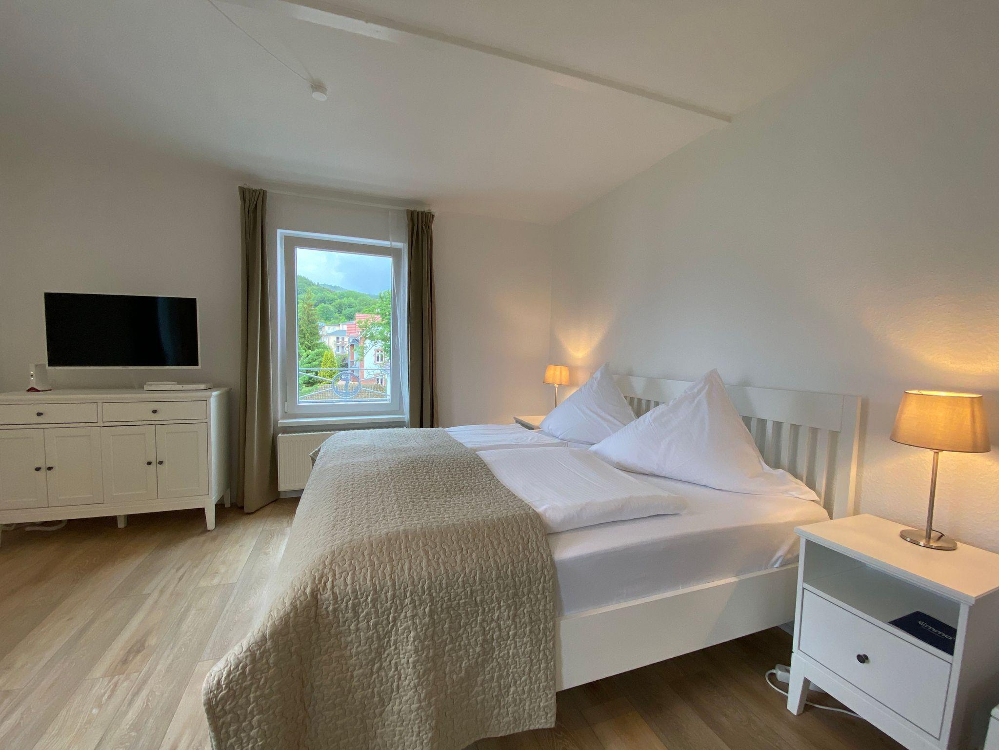 1 Raum-Ferienwohnung mit seitlichen Ostseeblick, NIchtraucher, für bis zu 2 Erwachsene und bis zu 2 Babybetten, gelegen im 2. Obergeschoss.