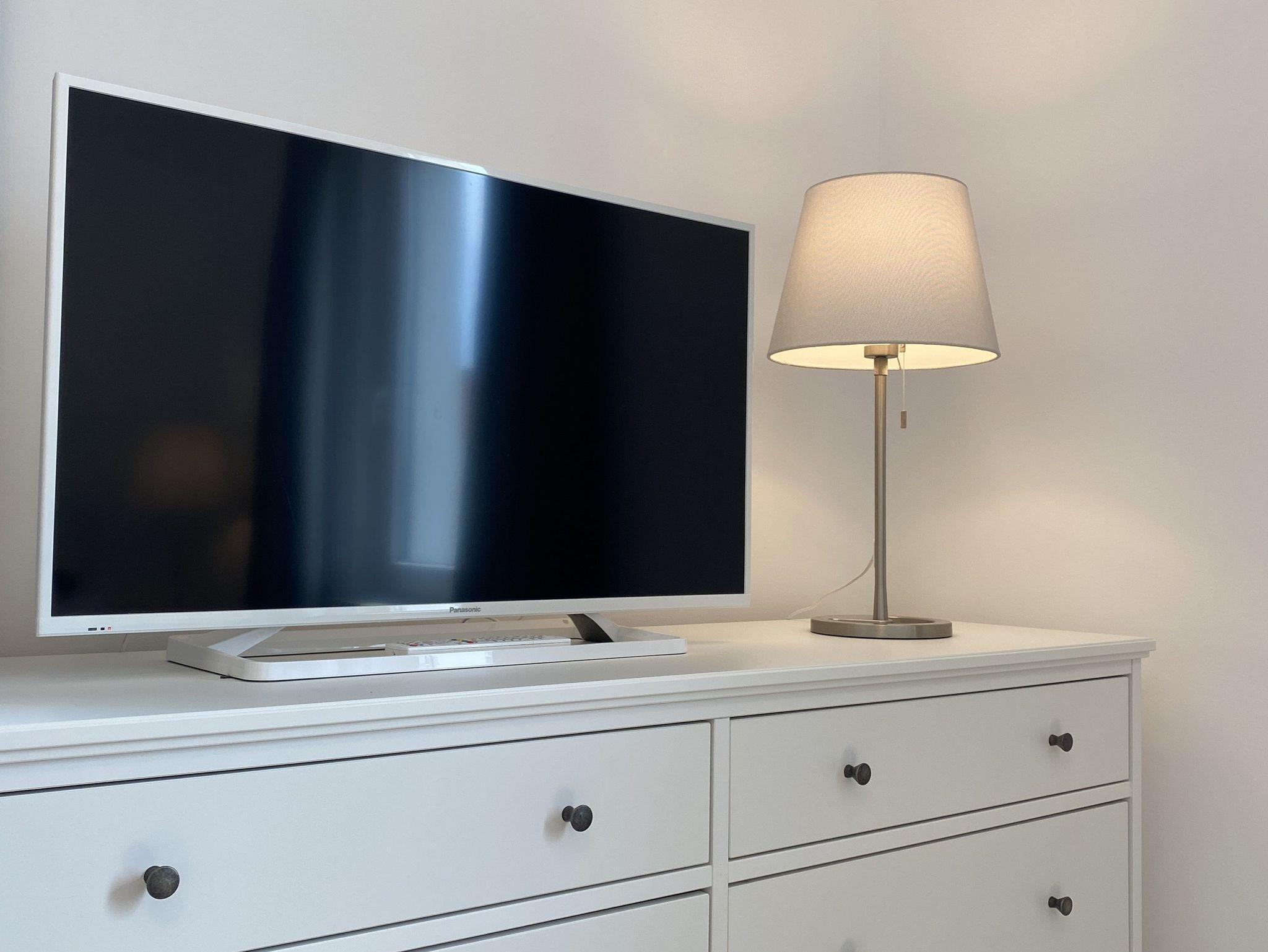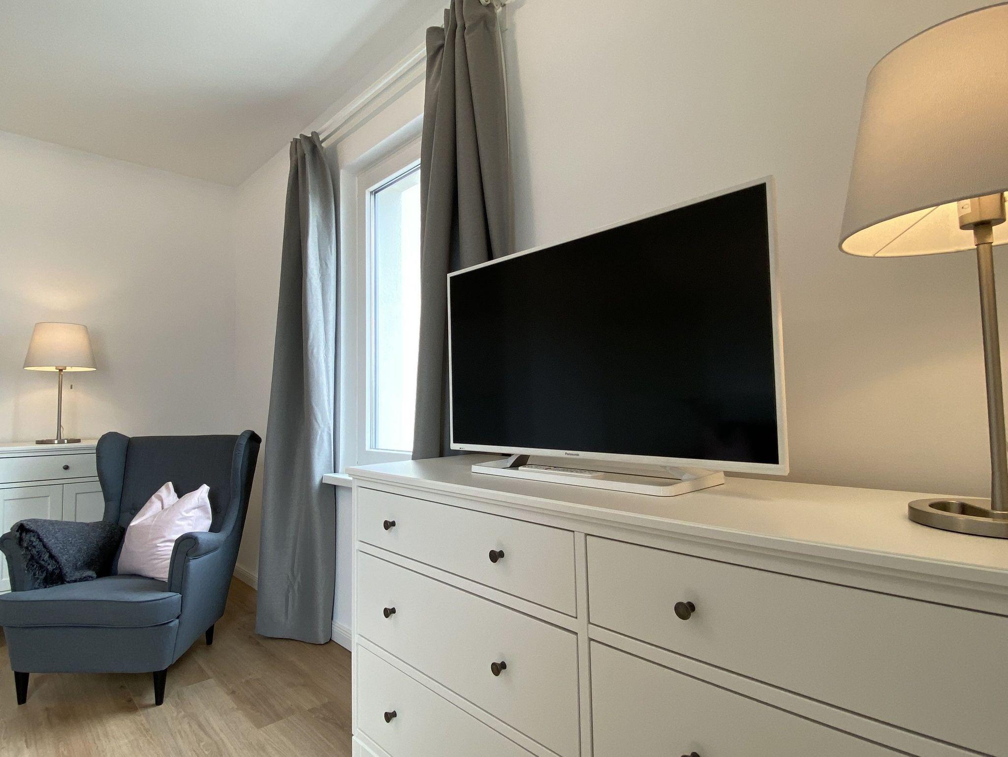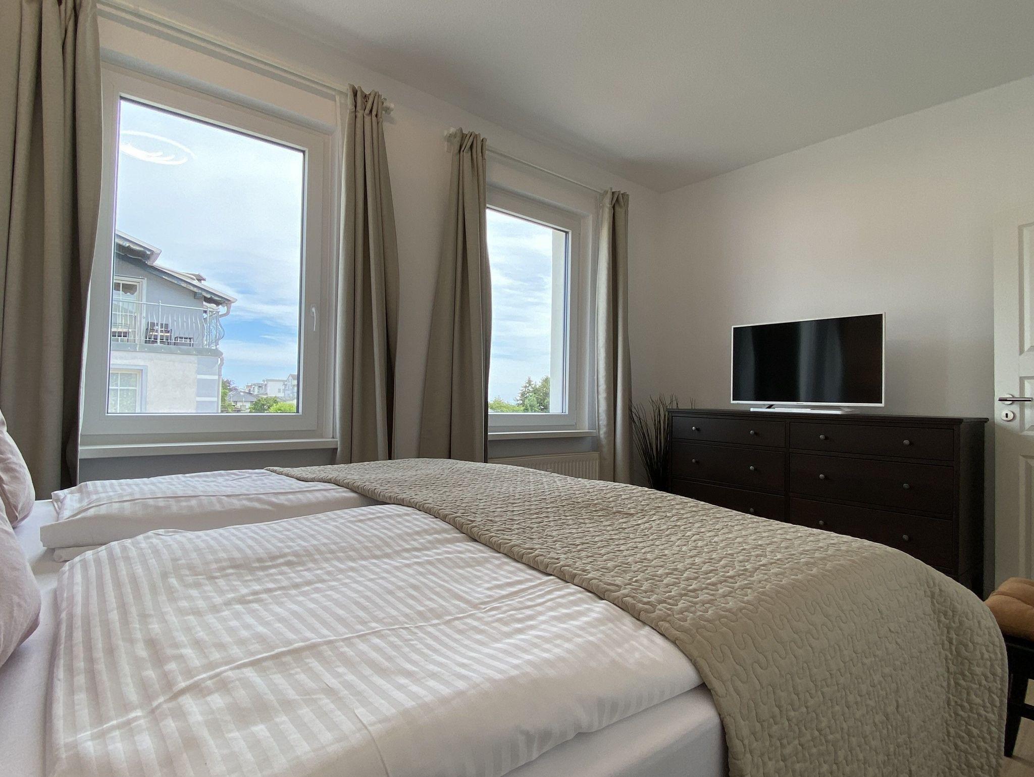 Separates, großzügiges Schlafzimmer mit großen Doppelbett (180 x 200 cm) und Kabel-TV Flat Screen.