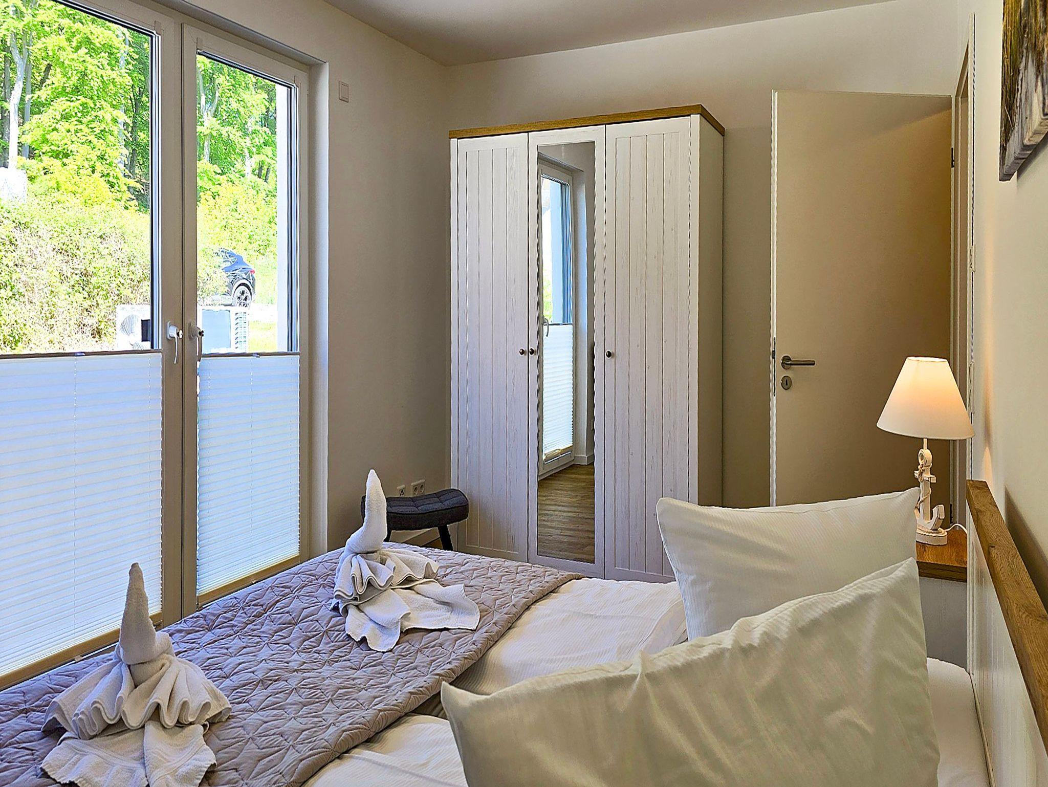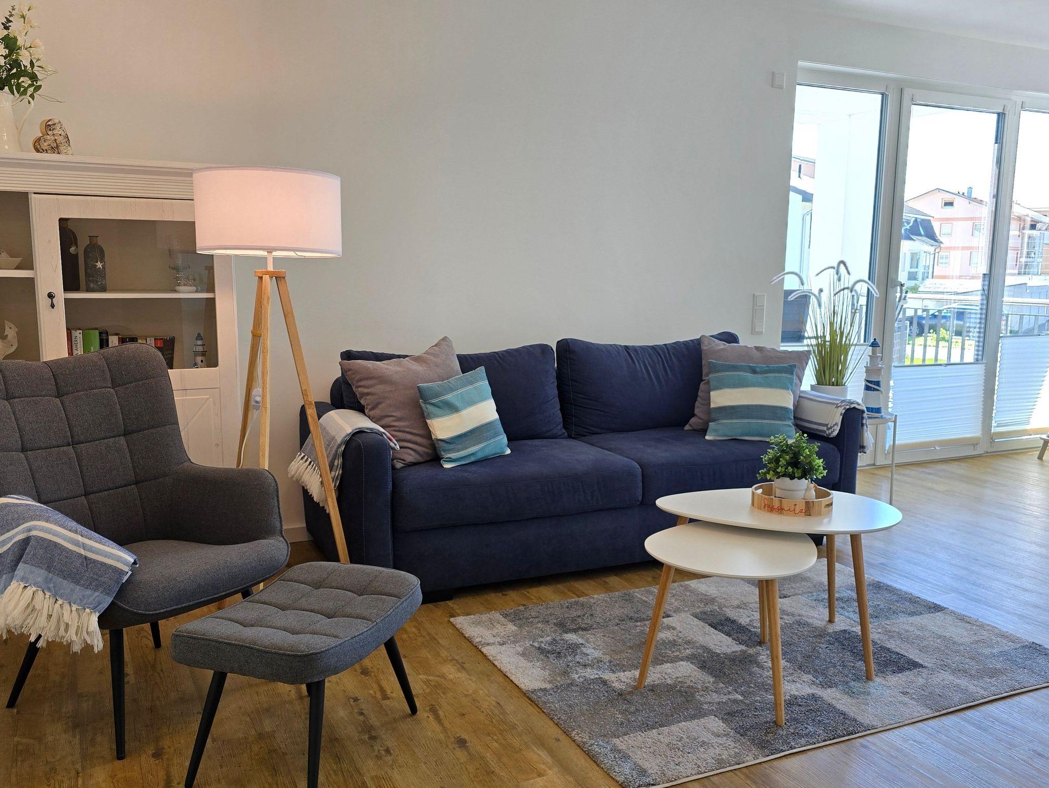 Der großzügige Wohnbereich verfügt über ein gemütliches (ausziehbares) Schlafsofa, einem LG HD Smart TV und einem großzügigen Essbereich. Kostenfreies WLAN steht Ihnen natürlich auch zur Verfügung. Für gemütliche Abende liegt eine Auswahl an Gesellschaftsspielen und Büchern bereit. Die Küche ist komfortabel mit einem Mikrowellenbackofen, Induktionsherd und einer Geschirrspülmaschine ausgestattet. Das Badezimmer ist mit einer bodengleichen 1,40m x 1,40m großen Dusche mit schwenkbaren Faltwänden individuell nutzbar. Die Wohnung ist hell und offen eingerichtet und verfügt über eine Terrasse mit Gartenmöbeln. Das Feriendomizil ist rollstuhlgeeignet und befindet sich im Erdgeschoss. Die komplette Wohnung ist mit einer Fußbodenheizung ausgestattet. Das Schlafzimmer verfügt über ein großes Doppelbett, Nachtschränkchen und je einer Leselampe, sowie ein großer Kleiderschrank.