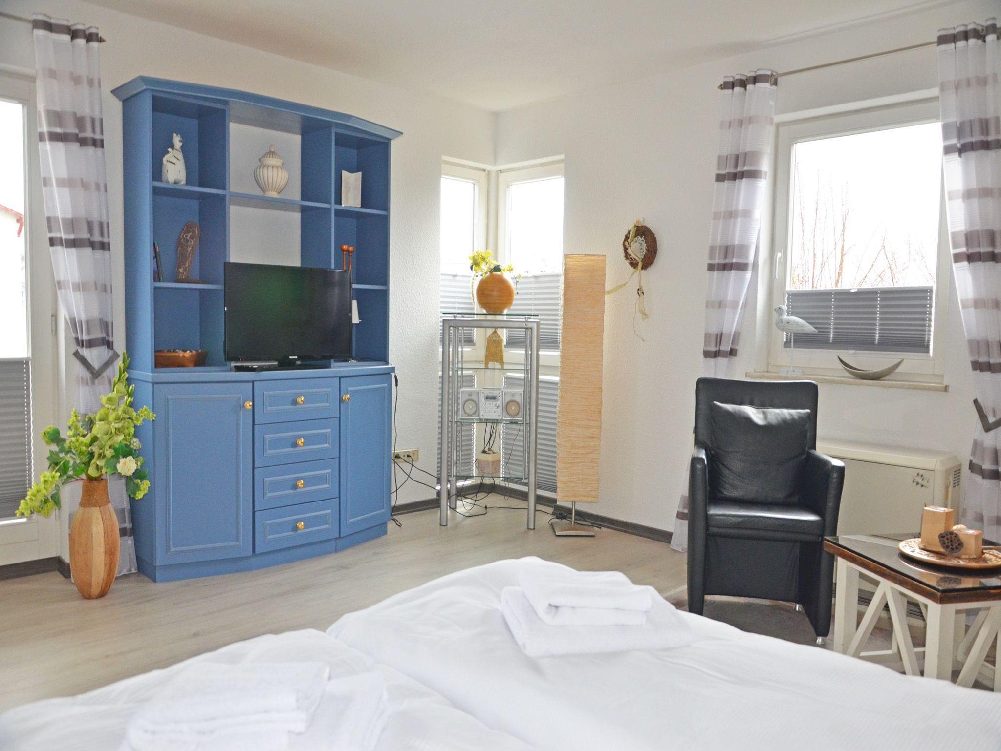 ? Kombinierter Wohn- /Schlafraum mit Doppelbett, eine Couch die auch als Aufbettung dient, ein Esstisch für 2 Personen, Flachbild - TV, kostenfreies W-lan und Stereo-Anlage.