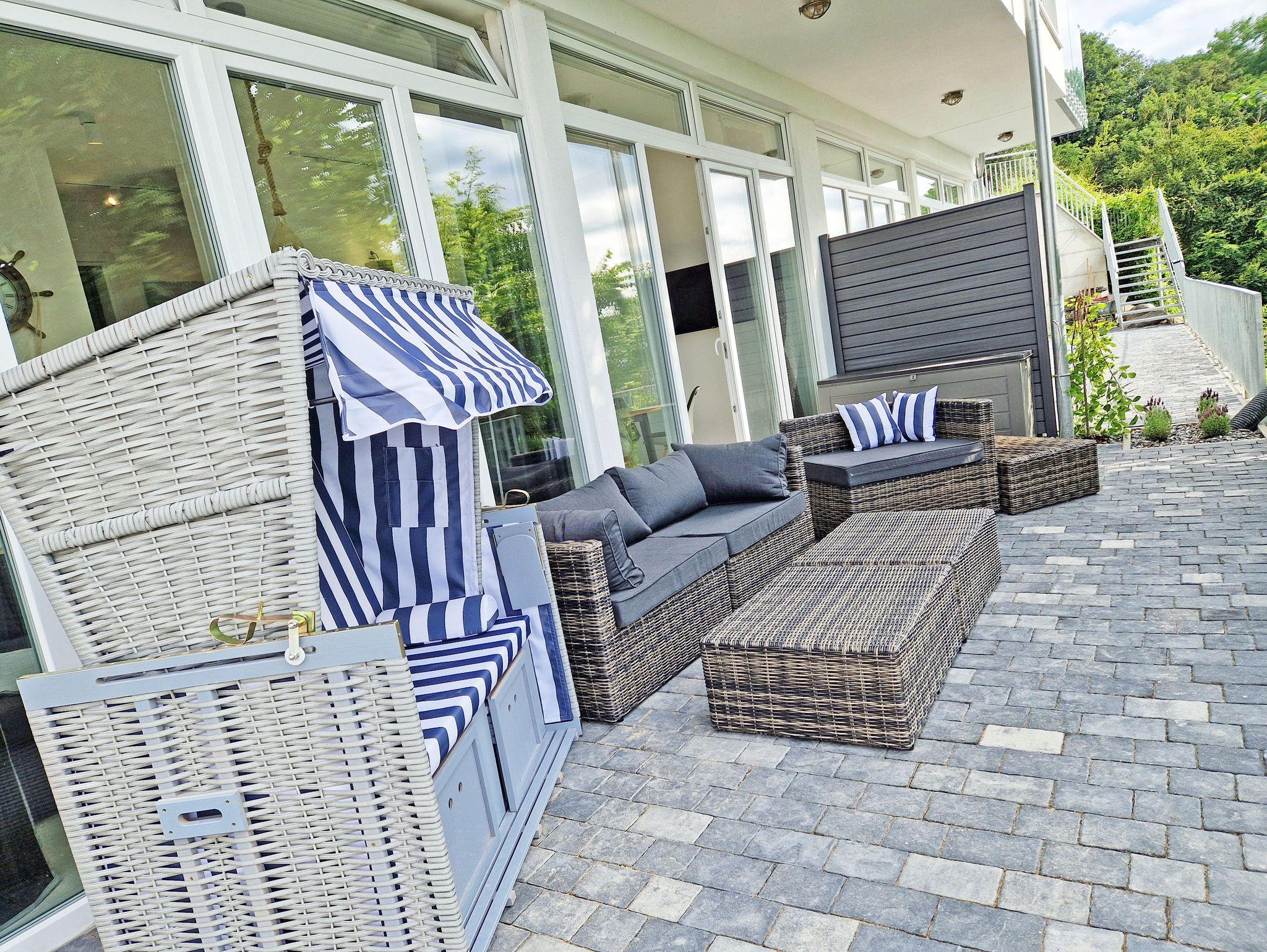 ? Die großzügige Terrasse mit Loungemöbeln und Strandkorb in Südlage, mit Meerblick, garantieren einen erholsamen Urlaub.