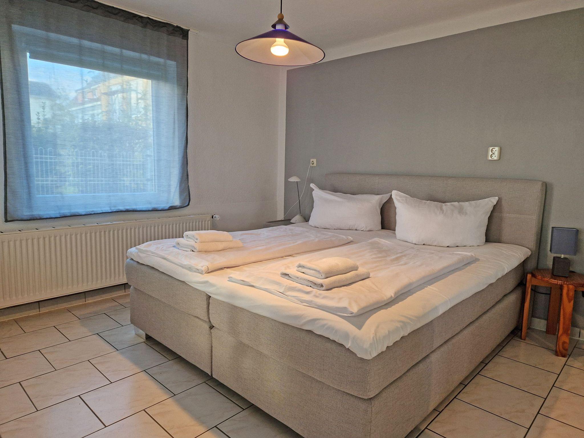 - 2 separate Schlafzimmer mit Doppelbett, Nachtschränkchen, Leselampen und Kleiderschrank.