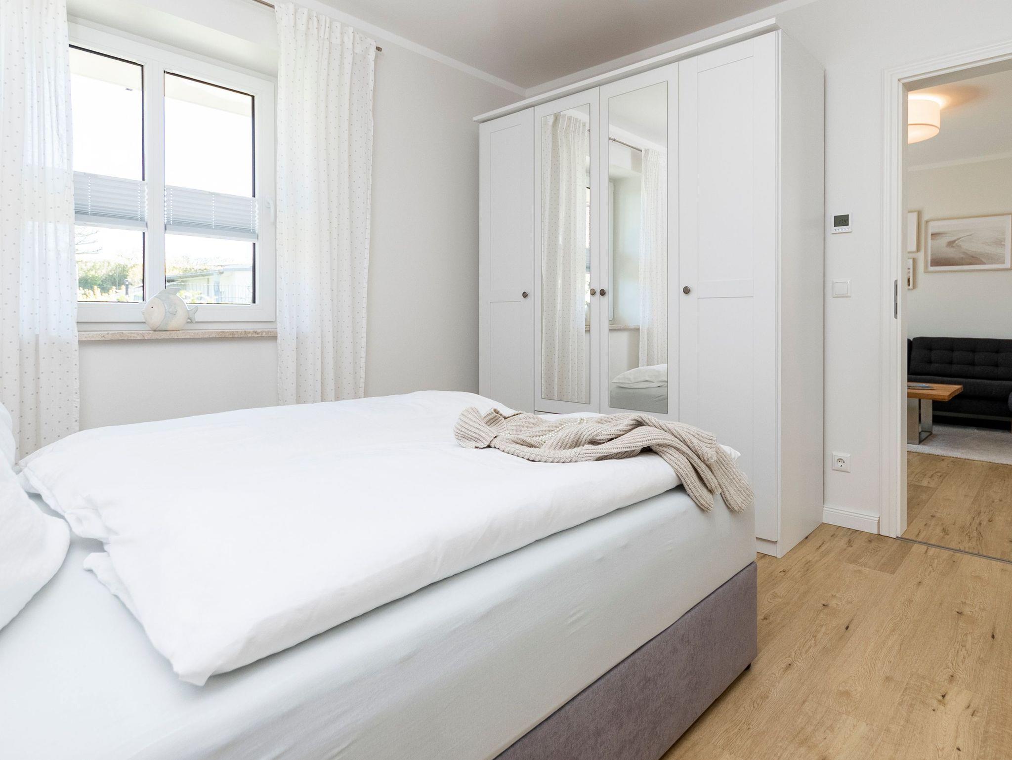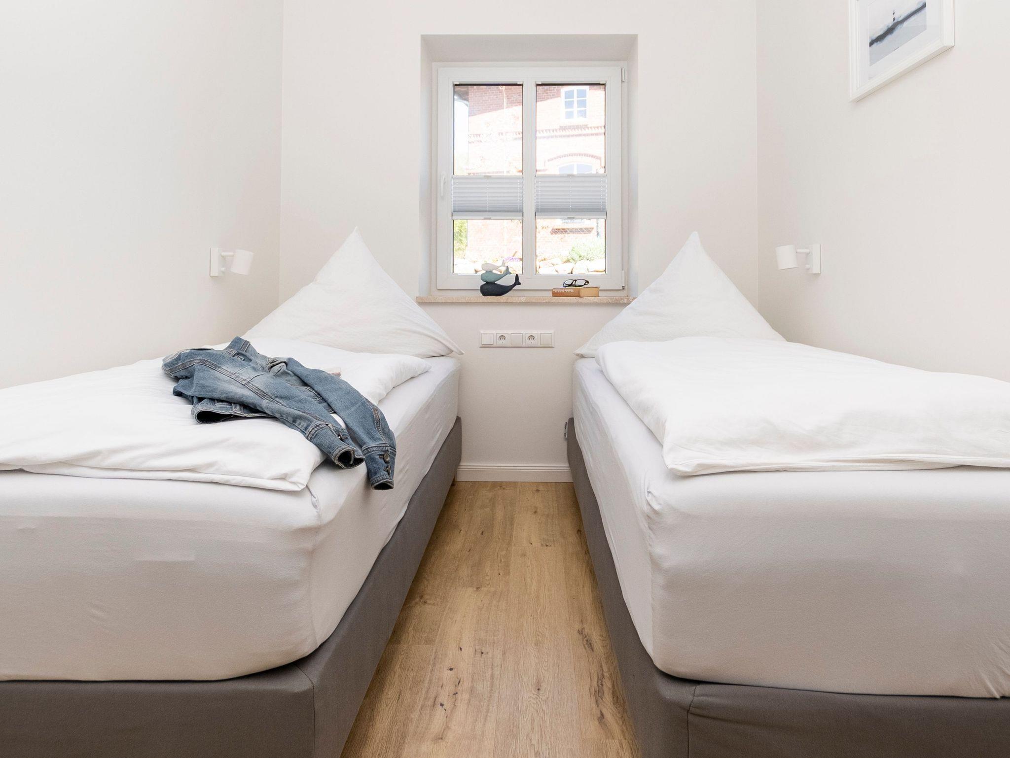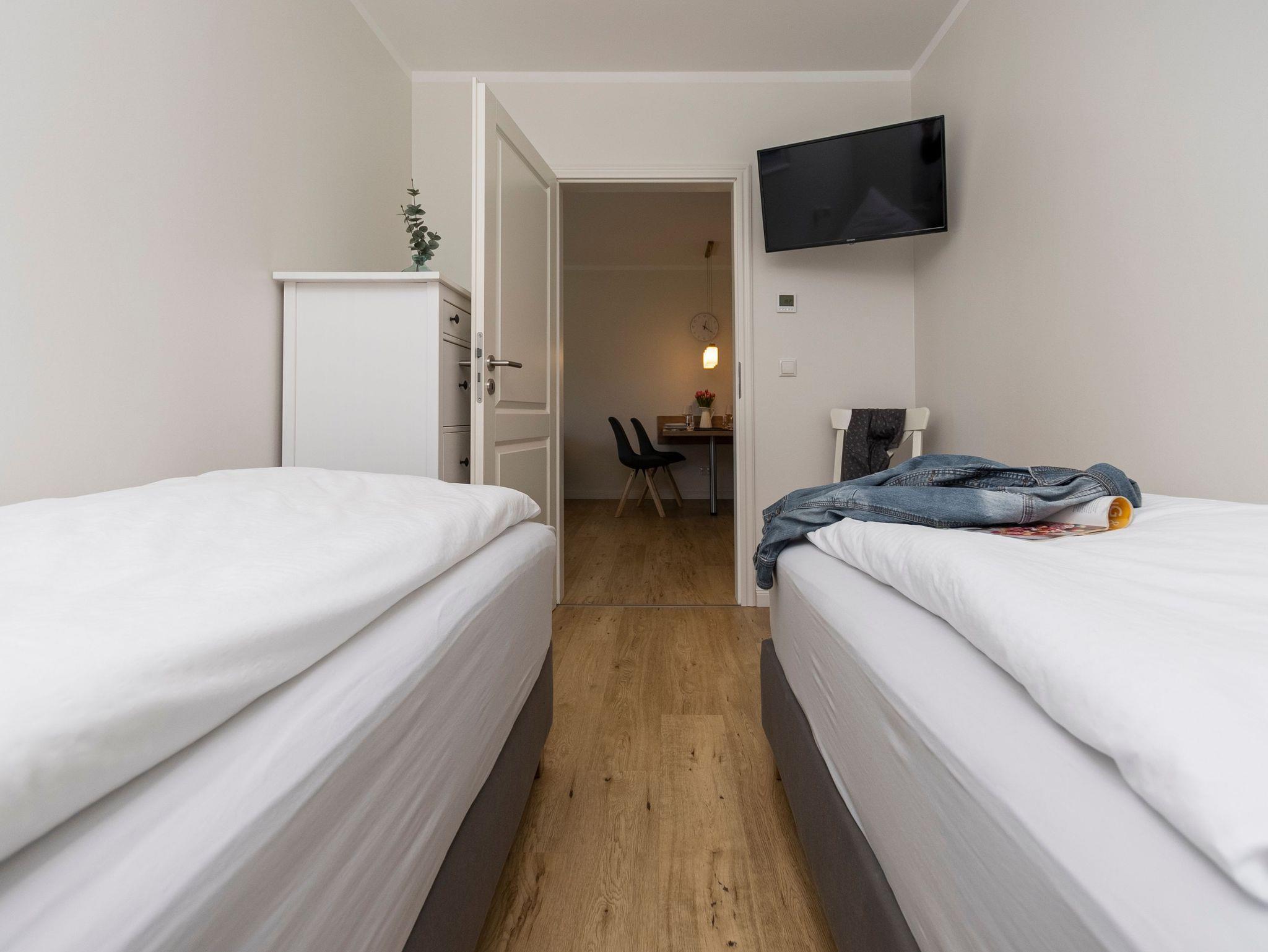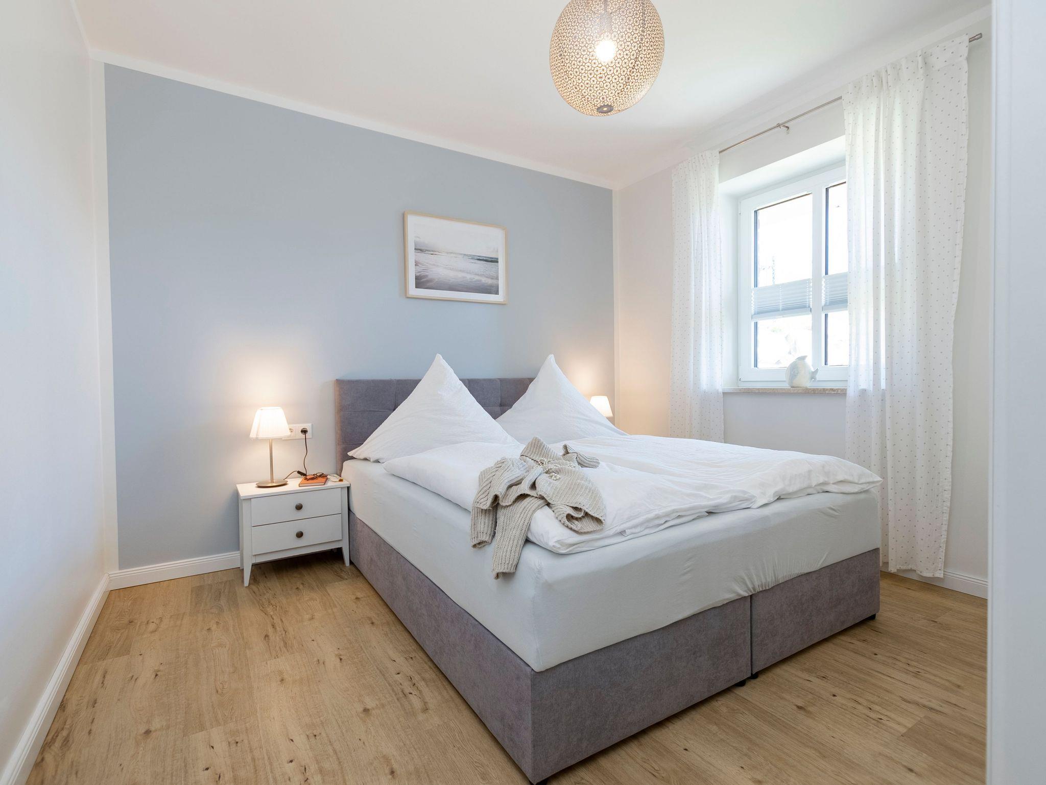 Eines der beiden Schlafzimmer bietet Ihnen ein 1,60 m breites Boxspringbett. Im zweiten Schlafzimmer stehen zwei Einzelbetten, diese können auf Wunsch aber auch gern zu einem Doppelbett zusammengefügt werden.