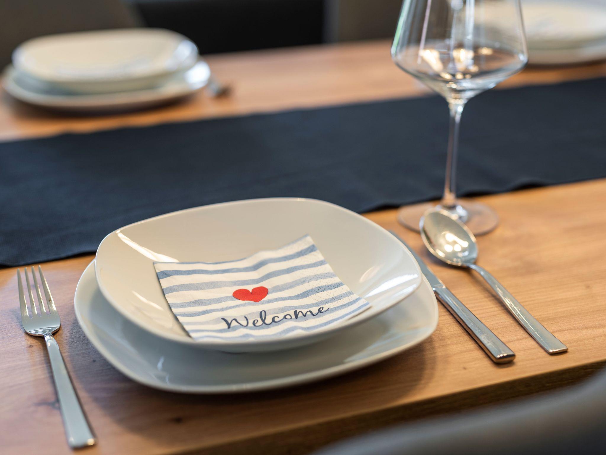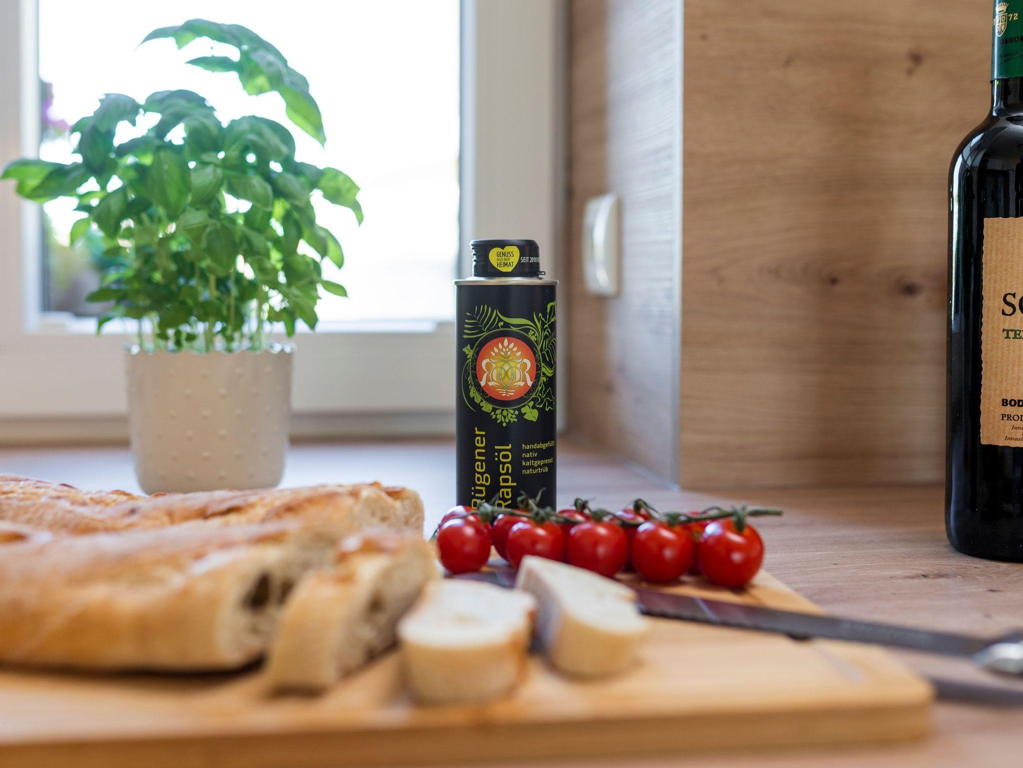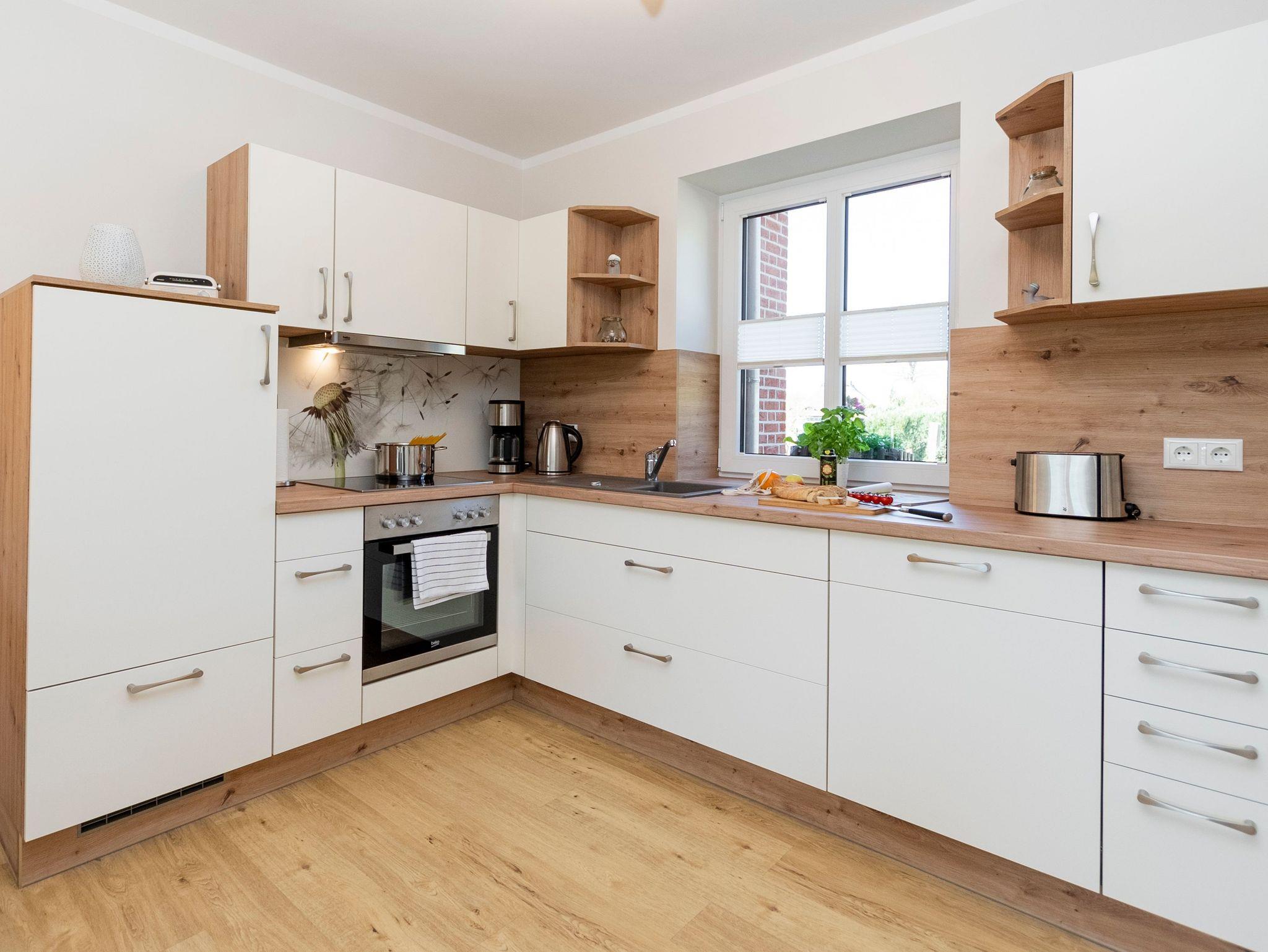 Der offen gestaltete Wohn-Kochbereich lädt zum gemütlichen Beisammensein und zu gemeinsamen Spieleabenden ein. Die Küche ist voll ausgestattet mit sämtlichen Küchengeräten, wie Geschirrspüler, Kühlschrank mit Gefriermöglichkeit, einem Herd und Ofen, einer Spüle, einem Wasserkocher und Toaster.