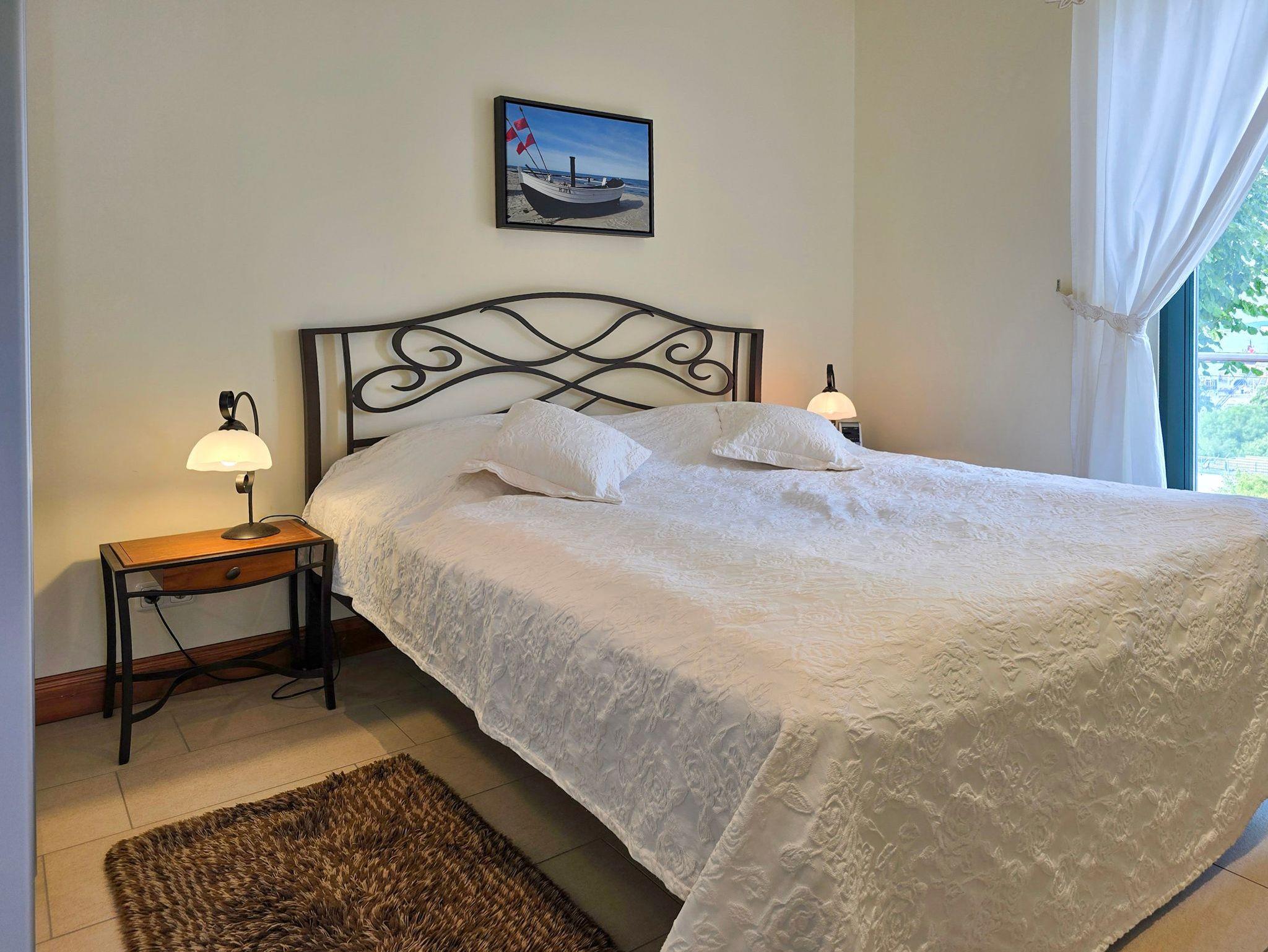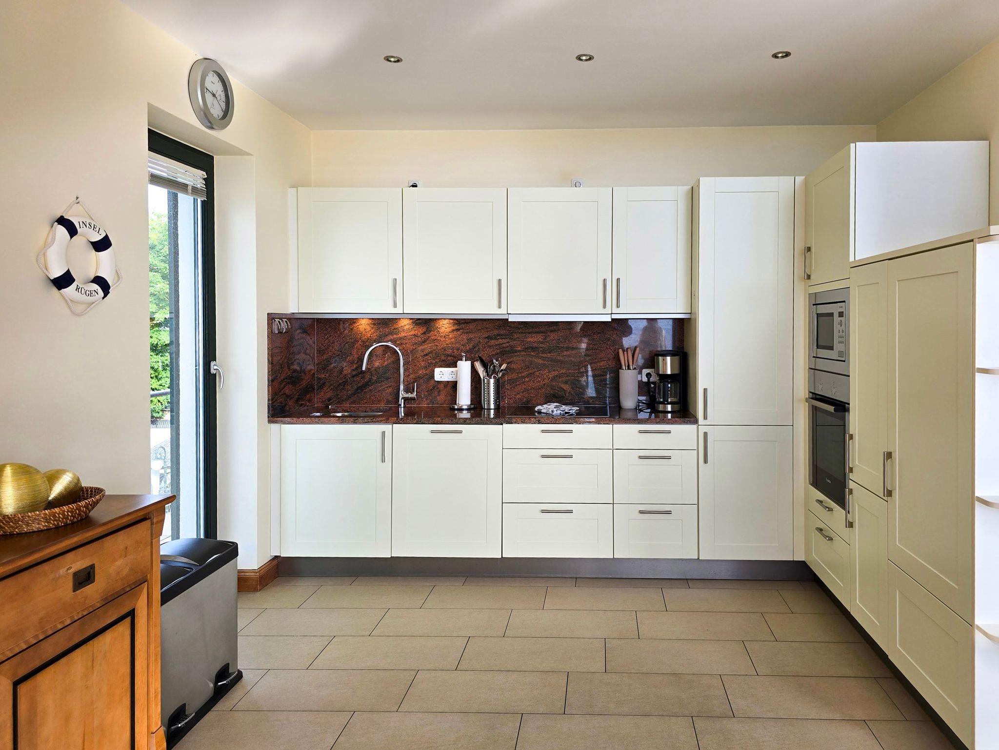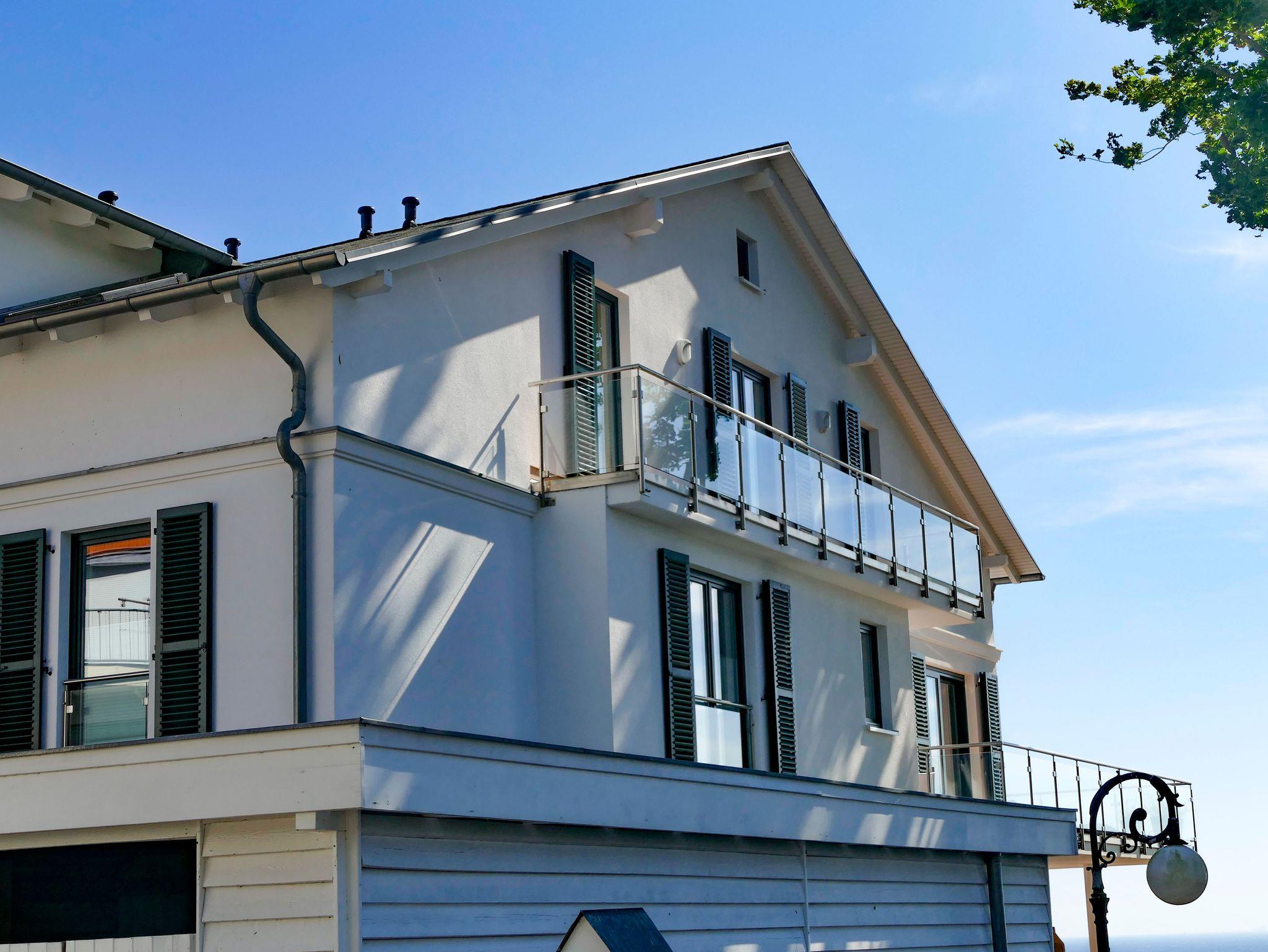 Das Penthouse-Appartement Sophie in der Villa Friede-Marie hat eine Größe von 112 m² und bietet Platz für 4 Personen. Das modern und gemütlich ausgestattete Appartement verfügt über 2 separate Schlafzimmer mit jeweils einem Doppelbett und einem großzügigen Wohnraum. Die gemütliche Sitzecke und ein Kamin laden zum Relaxen ein. Der Essplatz und die integrierte Küche, die ebenso den gehobenen Ansprüchen genügt, wie die gesamte Einrichtung und Lage des Appartements, lassen keine Wünsche offen. Im größeren Bad befinden sich Badewanne, Dusche, 2 Waschtische, Bidet und Toilette, das zweite Bad ist mit einer Dusche und WC ausgestattet. Des weiteren gibt es eine eigene Sauna sowie Waschmaschine und Trockner im Appartement. Vom Wohnzimmer aus gelangen Sie auf den großzügigen Balkon, auf dem sich hochwertige Sonnen- und Sitzmöbel befinden. Der freie, herrliche Ostseeblick, die Sicht auf den Stadthafen und der Binzer Bucht komplettieren das luxuriöse Angebot. Ein PKW-Stellplatz sowie eine Unterstellmöglichkeit für Ihr Fahrrad oder dergleichen stehen Ihnen vor dem Haus zur Verfügung.