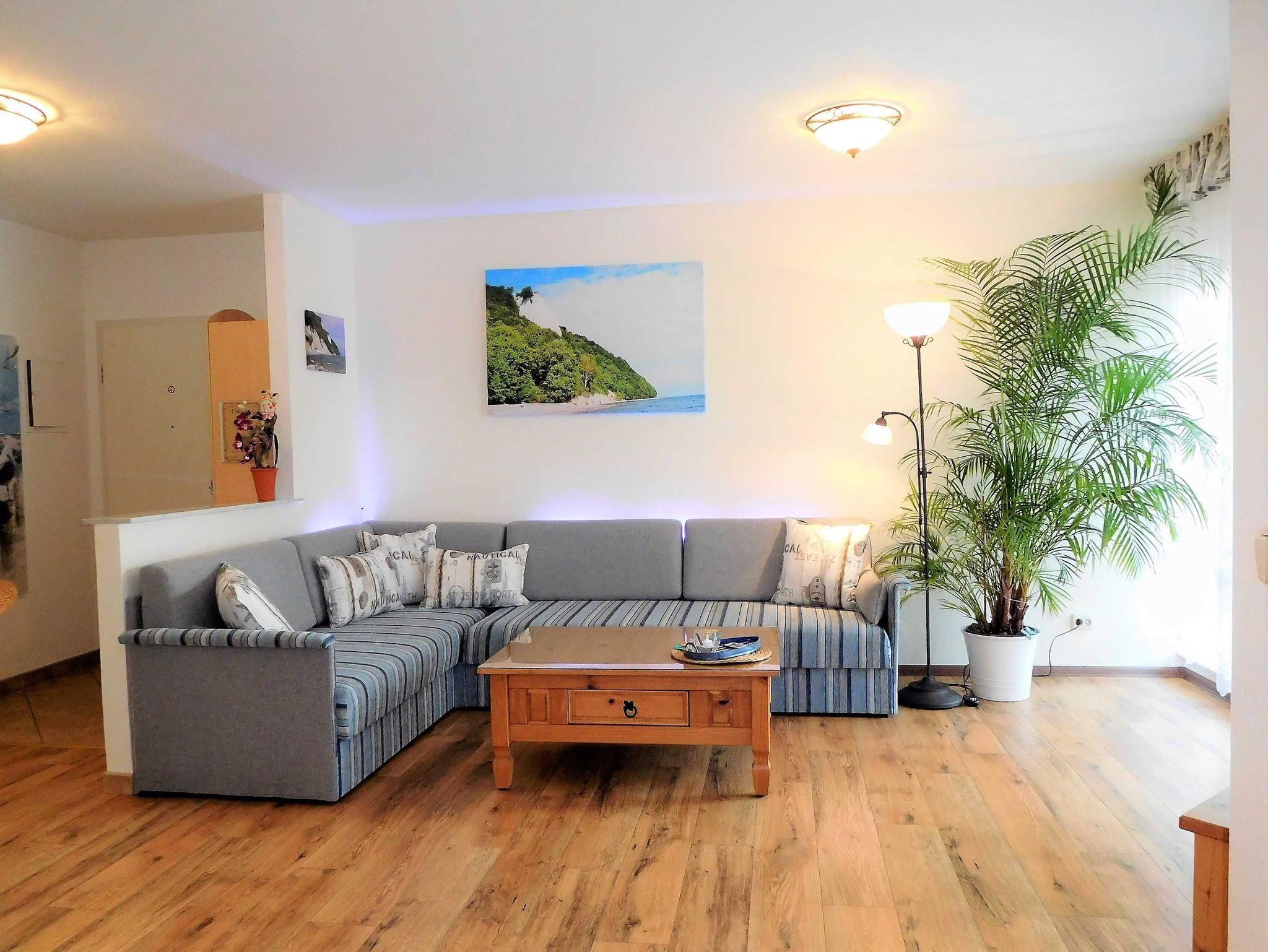 Ferienwohnung Sassnitz. Diese Komfort-Ferienwohnung befindet sich in bevorzugter Lage am Hochufer in einem gepflegten Apartmenthauses in ruhiger Lage aber sehr Zentral. Sie verfügt über einen großen lichtdurchfluteten Wohnraum mit einer gemütlichen Eckcouch wo sie sich beim Sat.- Fernsehen oder Musikhören entspannen können.Oder setzen sie sich auf den Balkon mit Gartenmöbeln,Sitzkissen und Sonnenschirm.Leckeren Fisch den sie gerade am Hafen direkt vom Fischer geholt haben bereiten sie in der kompletten Einbauküche mit allem Komfort , wie Geschirrspüler,Mikrowelle,Ceranfeld,Kühl-Gefrierkombi usw mit Freude zu.Speisen können sie auf bequemen Stuhlsesseln am grossen Esstisch. .Die Nacht geniessen sie im grosszügigen Schlafzimmer mit Doppelbett und 2. Balkon und auf der Eckcouch.Das Bettzeug wird ganz einfach aus dem Bettkasten hervorgezaubert und verschwindet am Tag auch wieder darin.Im Bad erwartet sie zum Entspannen eine schöne Dusche. Auch ihr Auto hat einen eigenen PKW-Stellplatz auf dem Hof. Bettwäsche inklusive. Handtücher bitte selbst mitbringen.