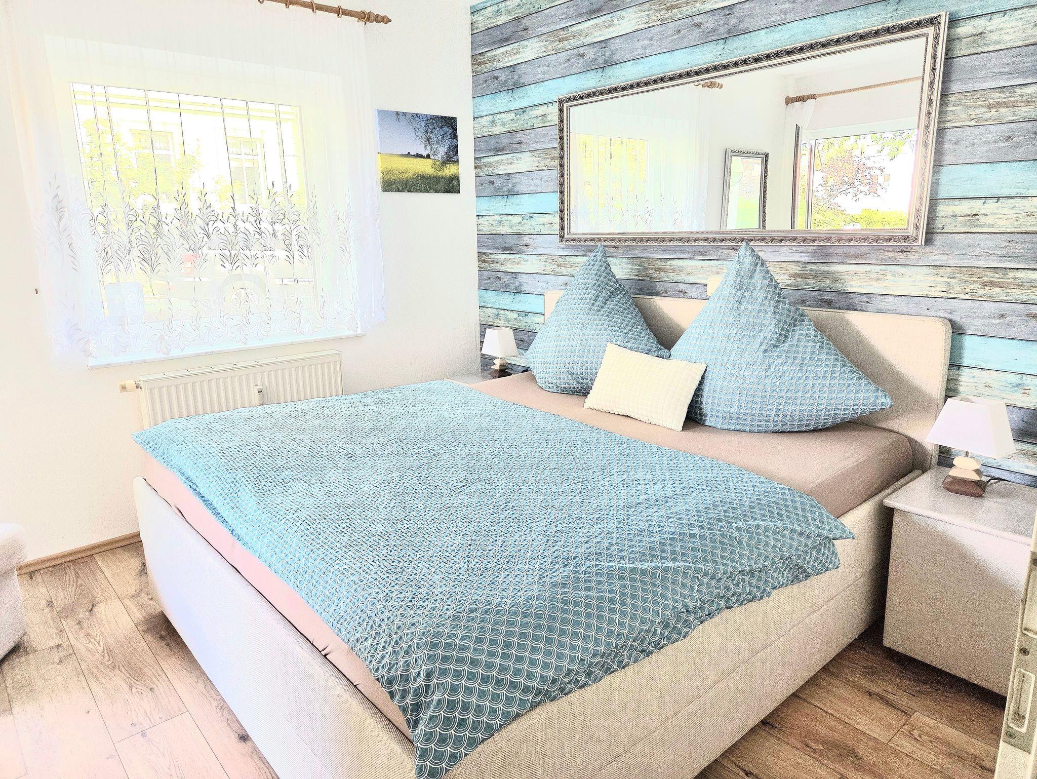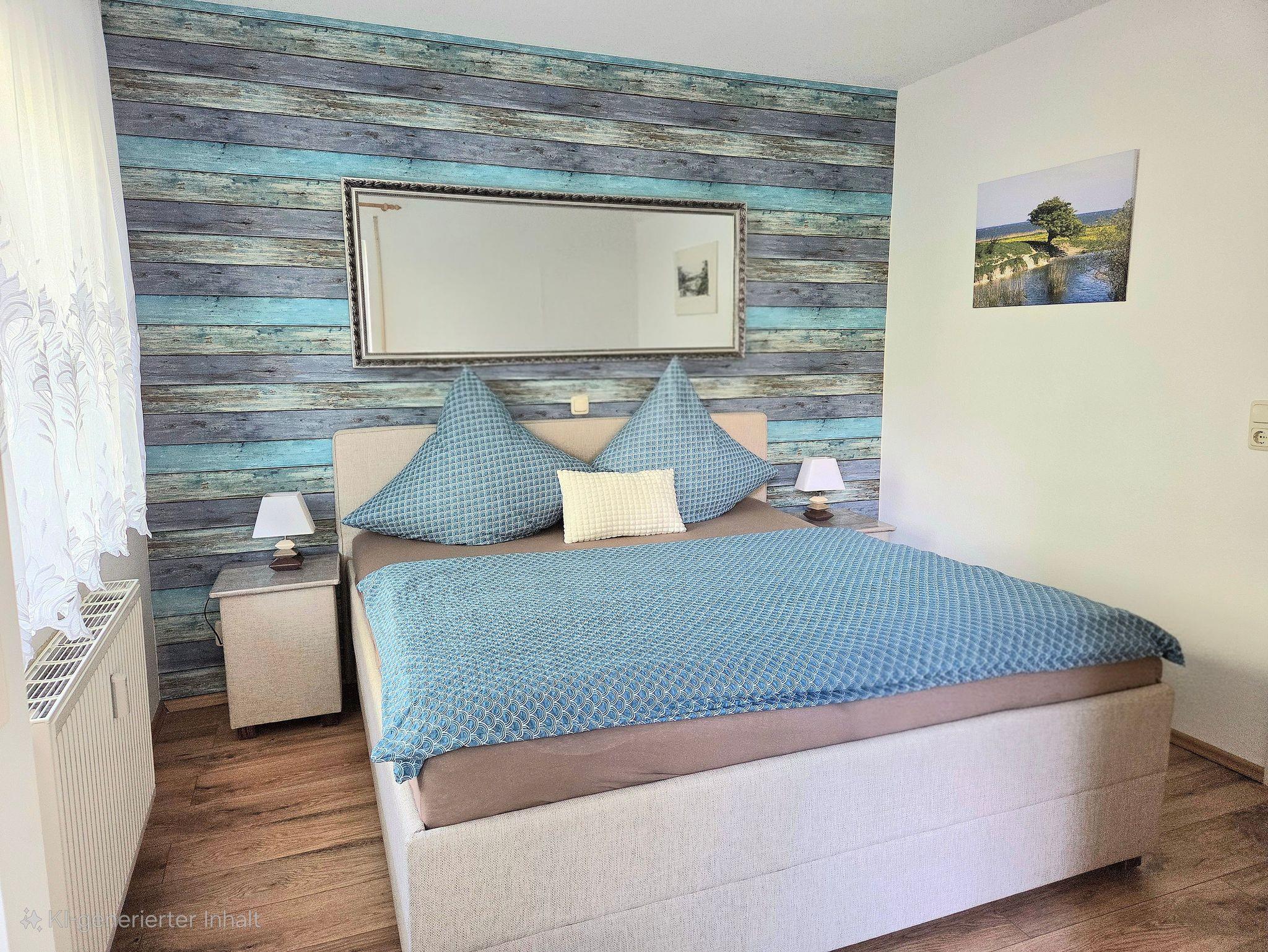 Die perfekte Nachtruhe erleben sie im großzügigen Schlafzimmer mit Doppelbett ausgestattet mit hochwertigen Kaltschaummatratzen auf verstellbaren Lattenrahmen.