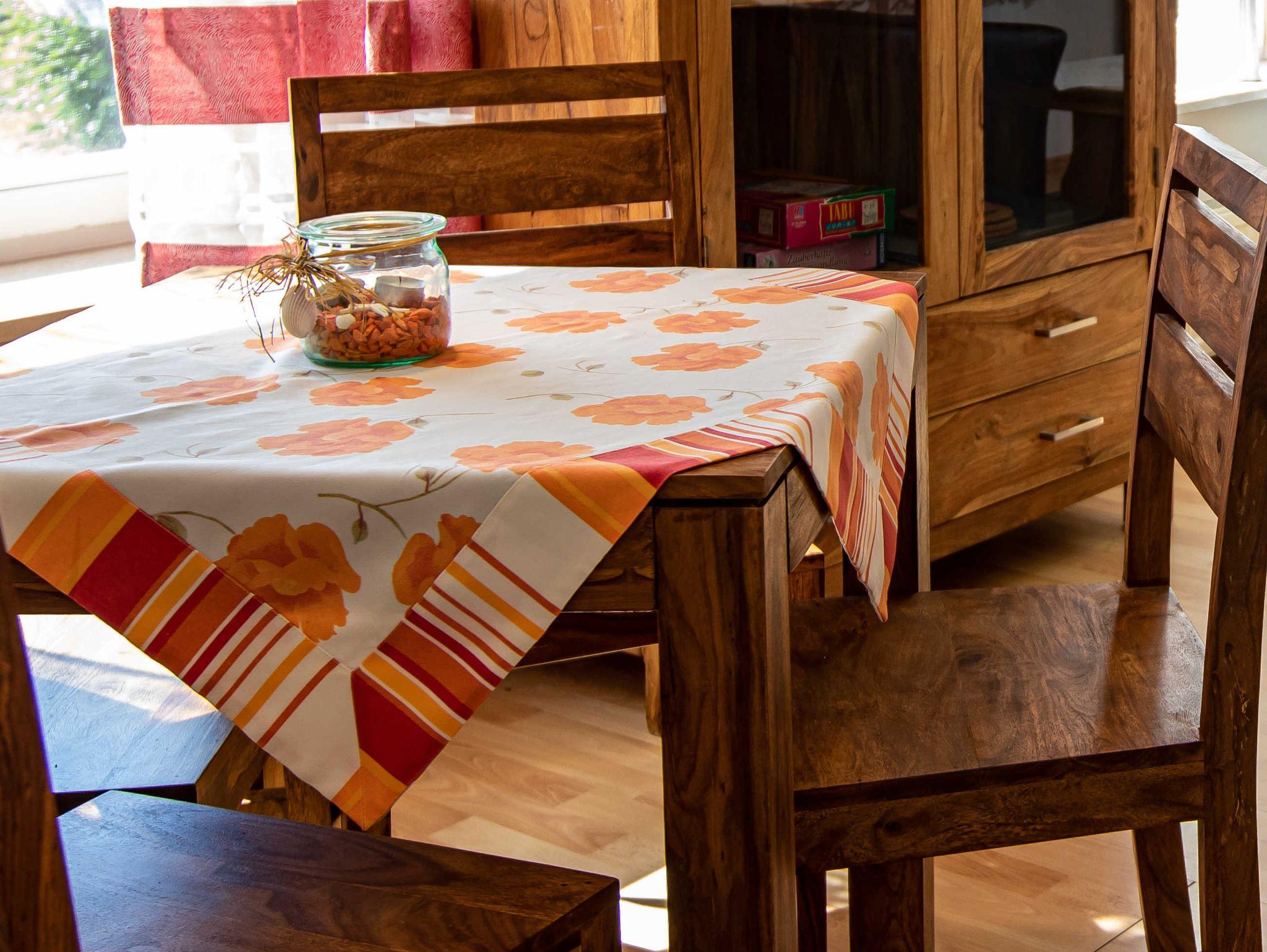 Das Wohnzimmer ist mit TV, Esstisch und als Schlafsofa (160x200) ausklappbarem Sofa ausgestattet und das Schlafzimmer mit Doppelbett (180x200; getrennte Matratzen). Ein Reise-Babybett steht zur Verfügung.