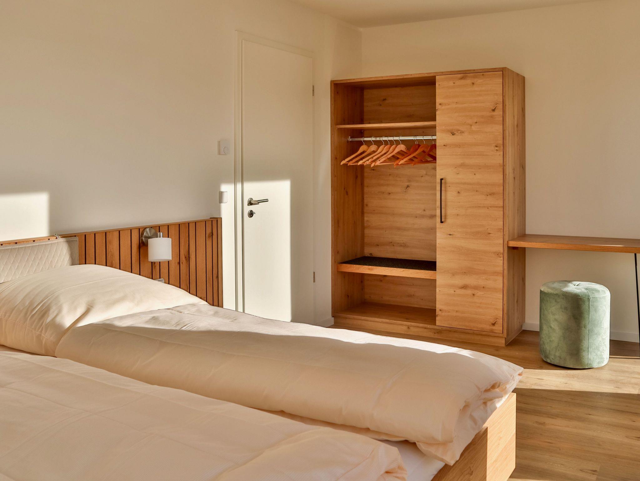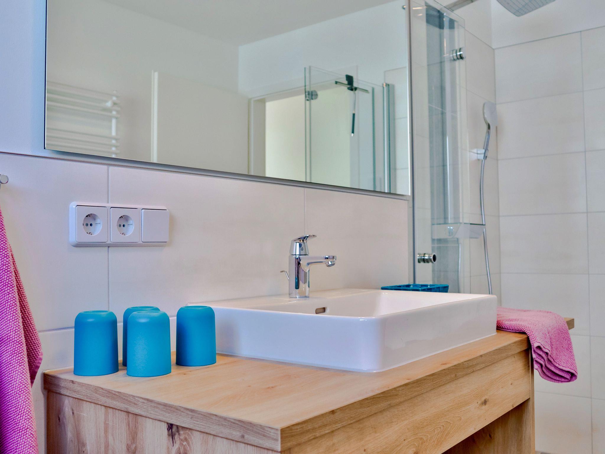 Die neue & hochwertig ausgestattete Ferienwohnung verfügt über zwei Schlafzimmer, jeweils mit Doppelbett (200 × 180) sowie ein Badezimmer mit Dusche, Badewanne & WC sowie Fön.