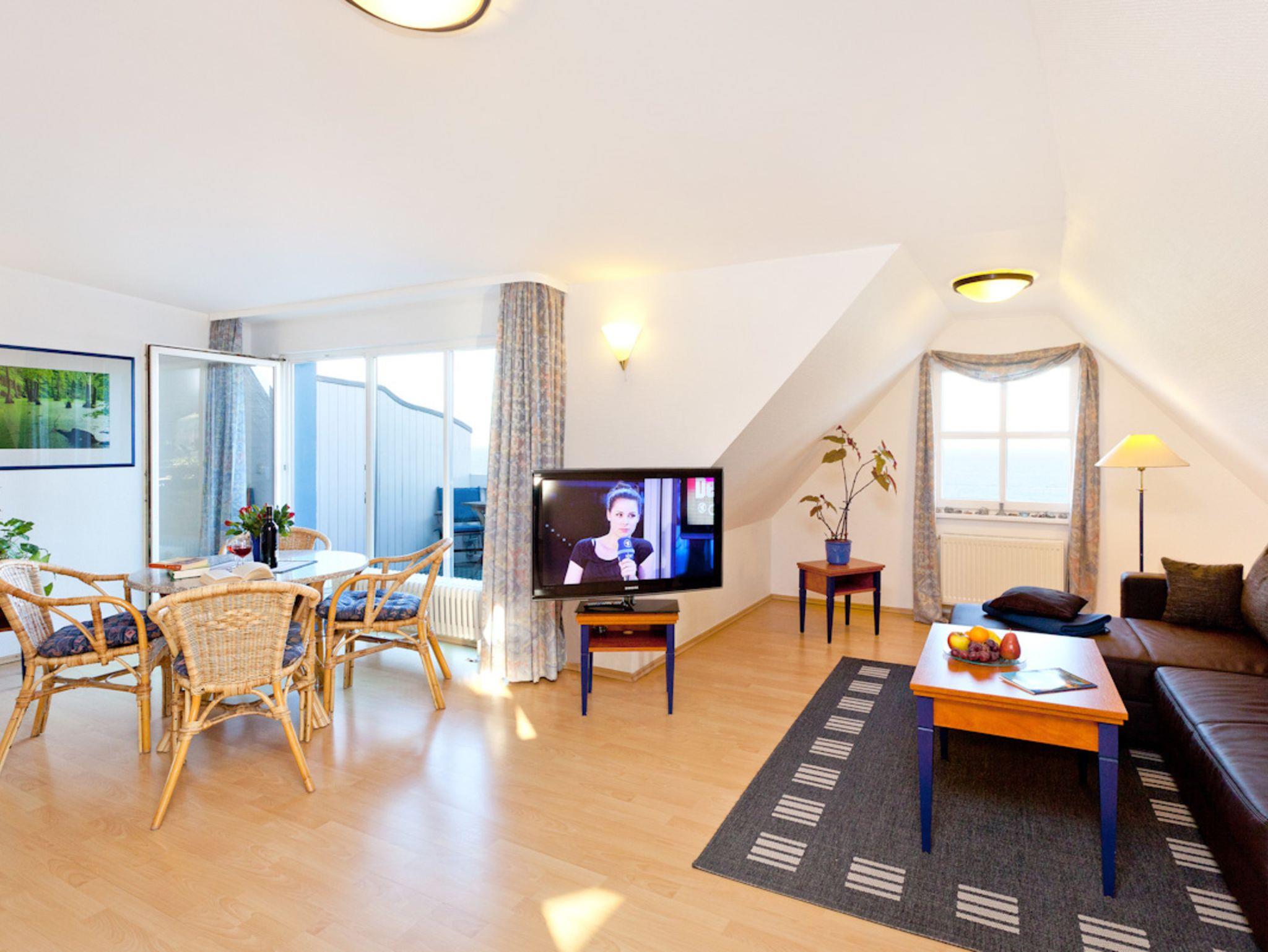 Das Appartement Binz besteht aus einem grossen Wohnbereich mit einer gemütlichen Wohnlandschaft, die für max. 2 Aufbettungen genutzt werden kann, eine 4er-Sitzgruppe mit direkter Sicht auf das Meer und mit einer komplett ausgestatteten Einbauküche z.B. mit Wasserkocher, Kaffeepadmaschine, Kaffeefiltermaschine, 4-Platten-Cerankochfeld,Toaster, Eierkocher, Geschirrspülmaschine, ausreichend Geschirr und Besteck, Salz und Pfeffer, Zucker,Geschirrtuch, Kaffeefiltertüten u.v.m., einem Bad mit Dusche und WC. Toilettenpapier, Handseife und Fön stellen wir für Sie bereit. Ausserdem gibt es ein Schlafzimmer mit einem Doppelbett (180x200) und einem grossen Kleiderschrank. Bettwäsche und Handtücher sind im Preis enthalten.