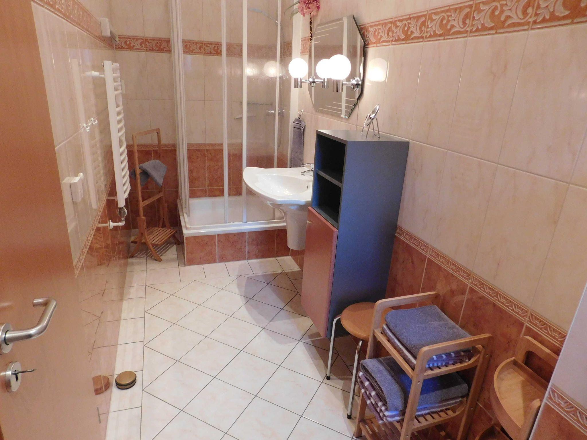 Zusätzlich gibt es auf dieser Wohnebene ein geräumiges und ansprechendes Duschbad.