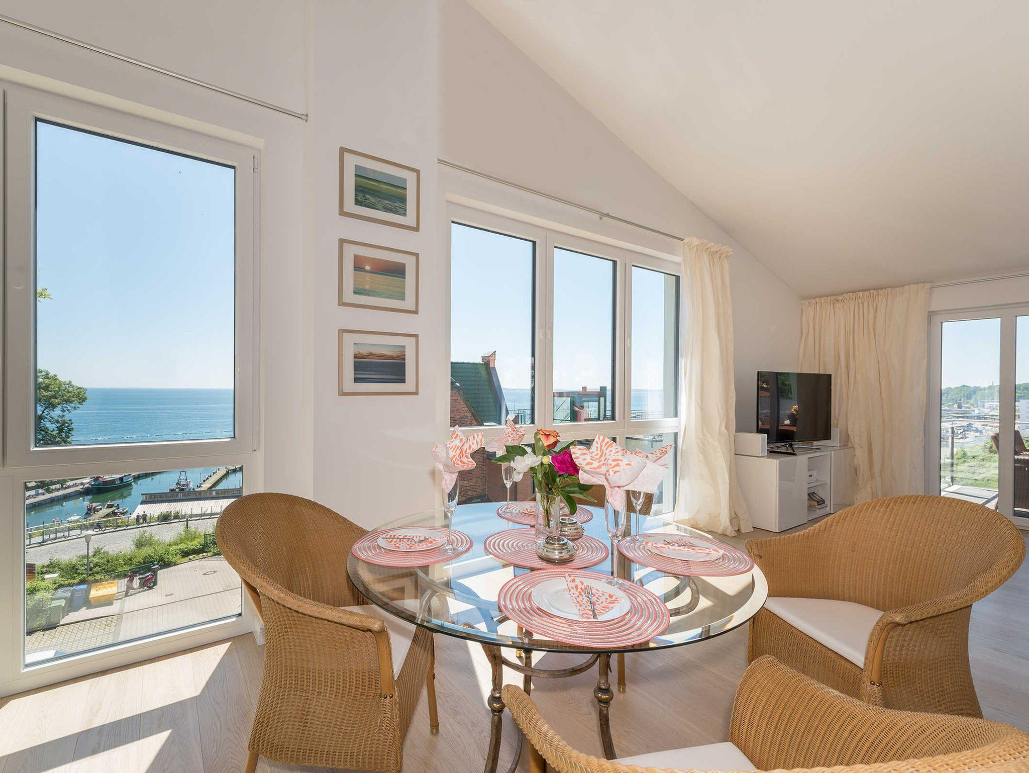 Hier erwartet Sie ein neues, im Loftstil erbautes Penthouse mit traumhaften Panoramablick über Hafen und Ostsee bis zur Prorer Wiek (Ostseebad Binz).