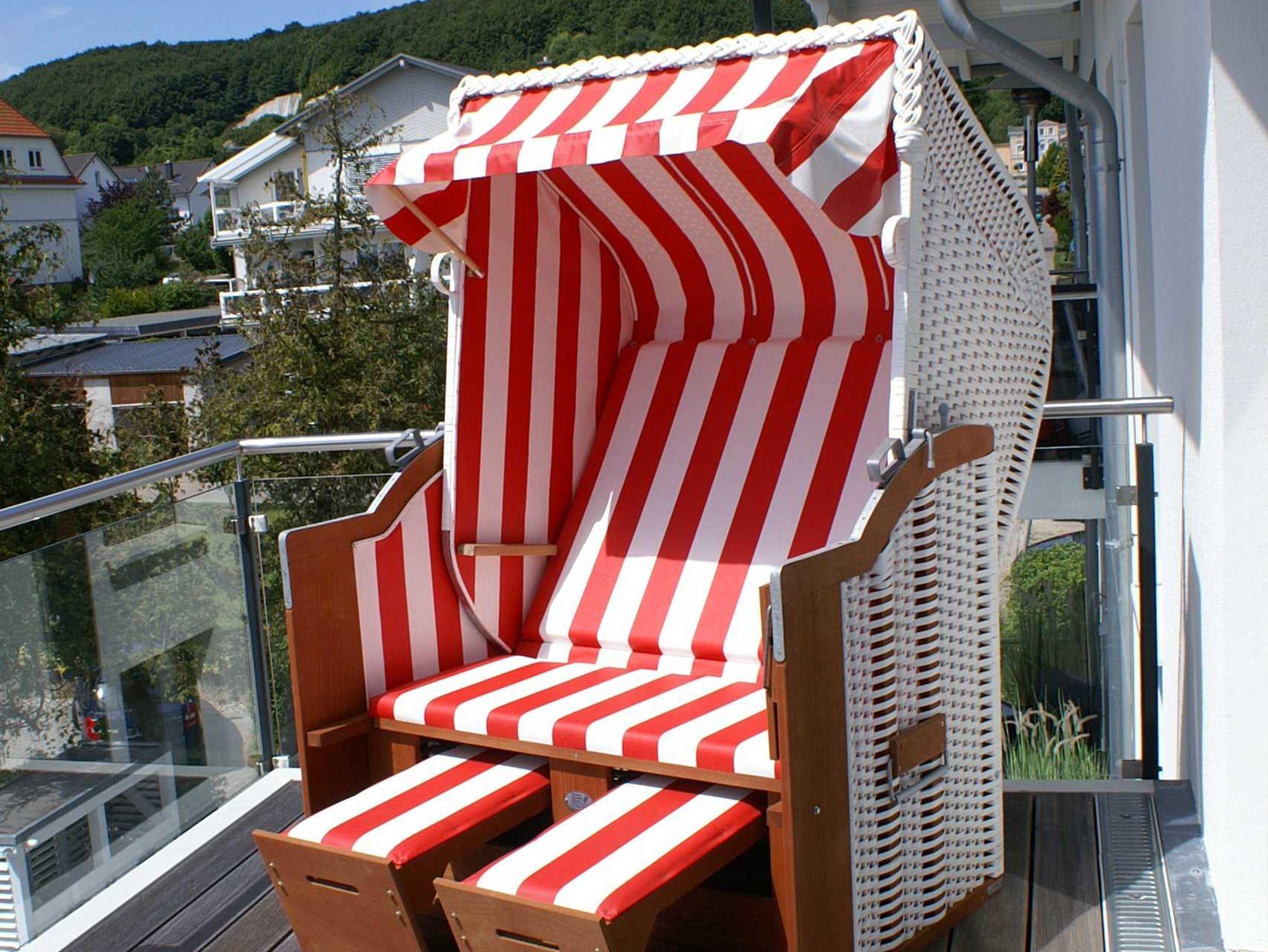 • eine mit Glas umrandete ca. 20 m² große Terrasse nach Südwest ausgerichtet inklusive Strandkorb und hochwertiger Terrassenbestuhlung
