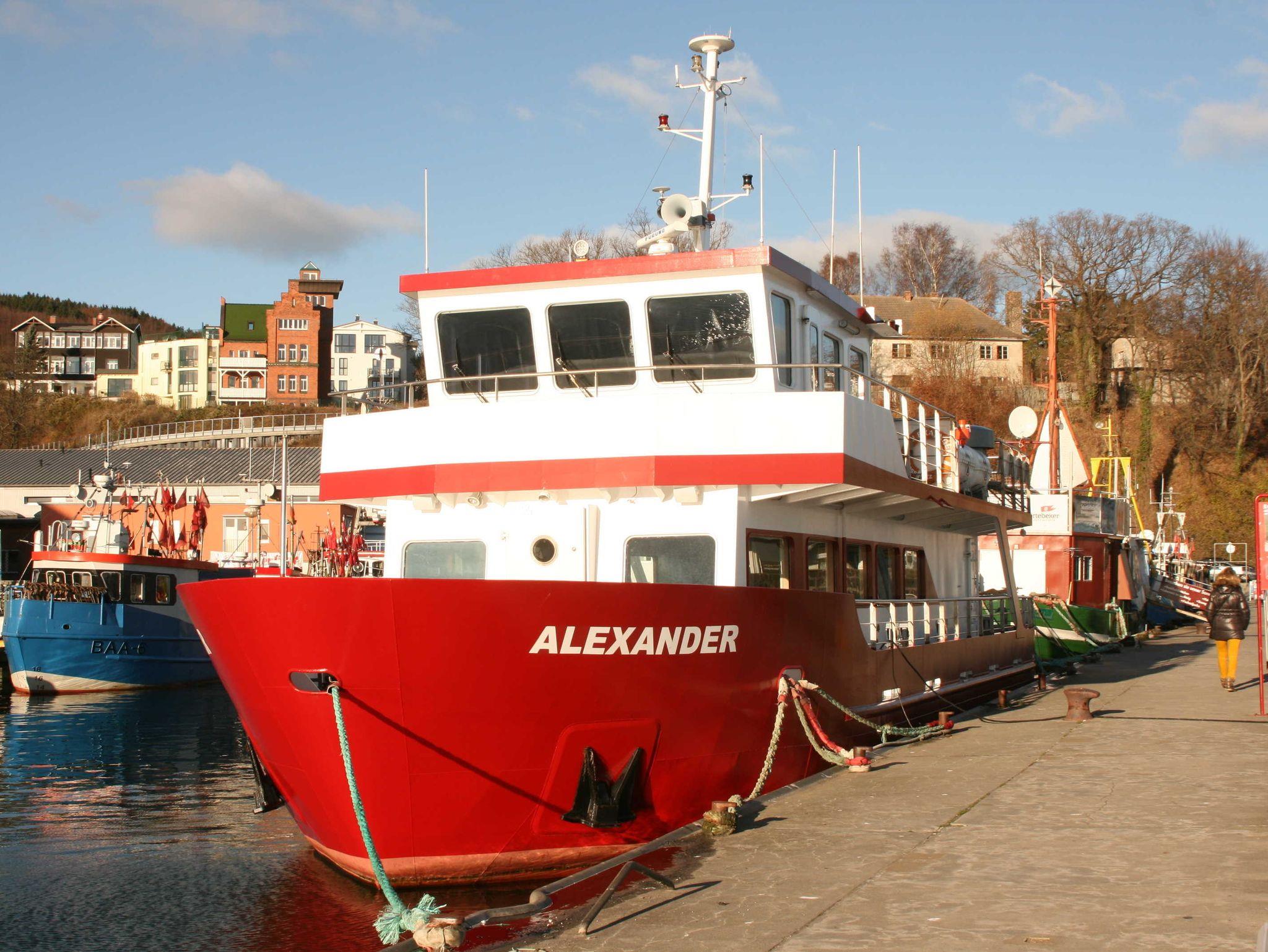 und die vorüberziehenden Schiffe, ebenso auf den Sassnitzer Hafen, der natürlich auch zu einem Spaziergang einlädt.