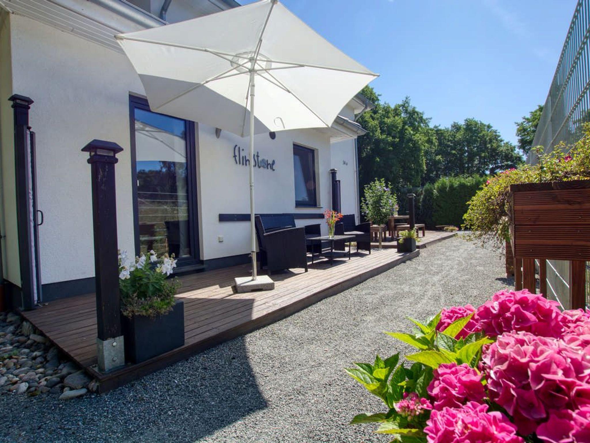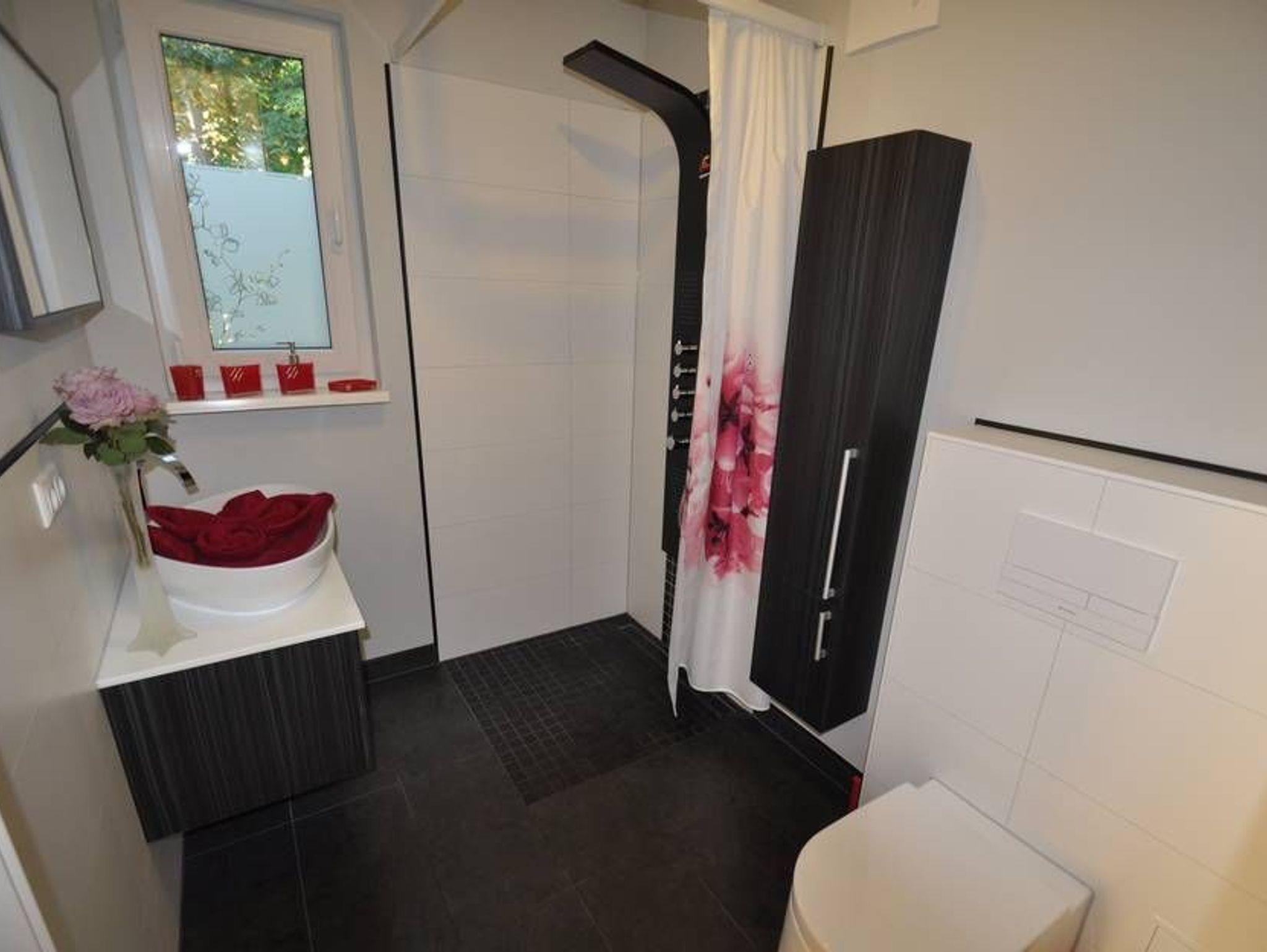 Wir vermieten auch gern an Gäste mit lieben Hunden (max. zwei Hunde, gegen Aufpreis). Das moderne Bad ist mit ebenerdiger Dusche, WC, Fön und Waschtisch ausgestattet und verfügt über Tageslicht.