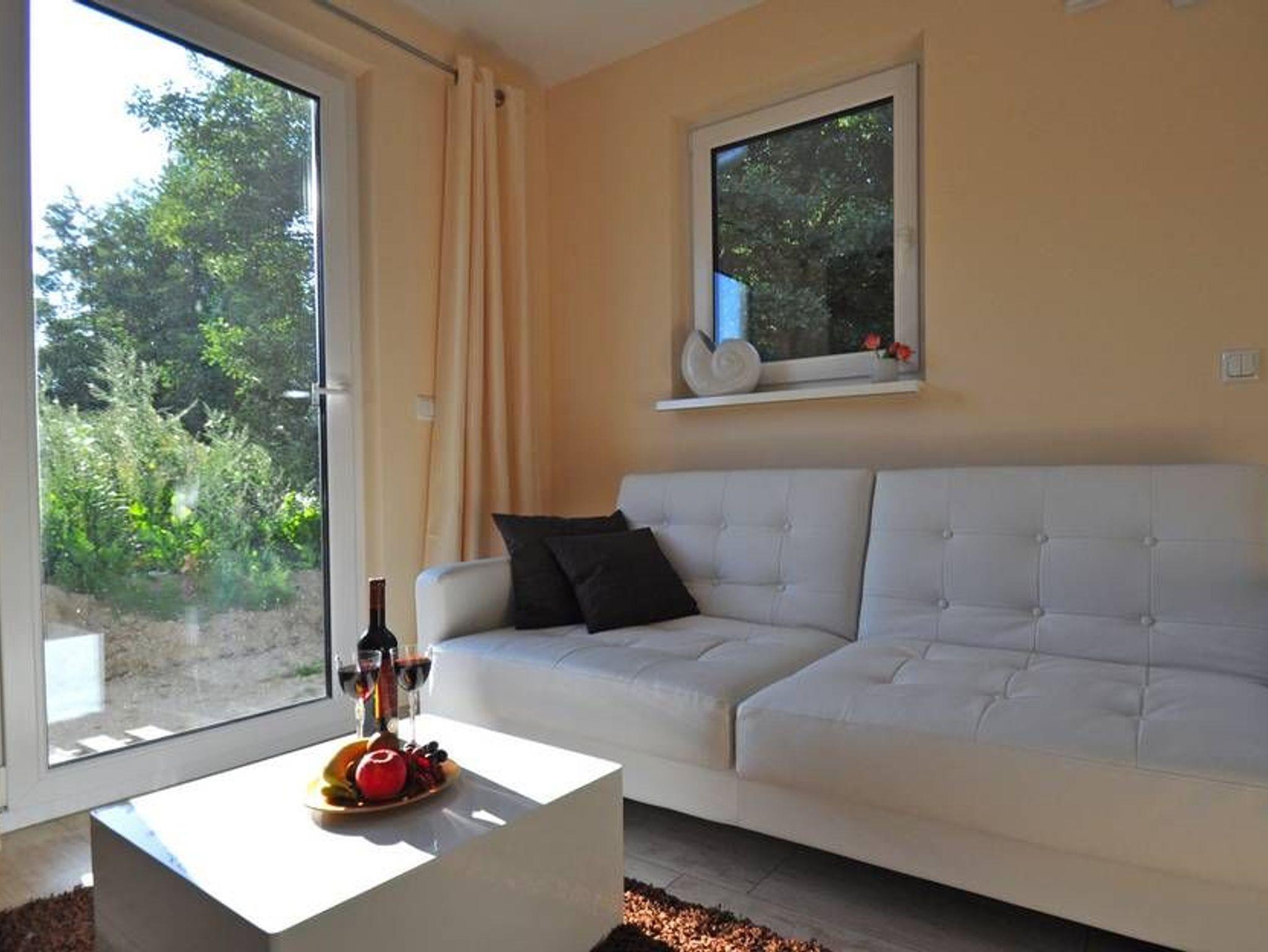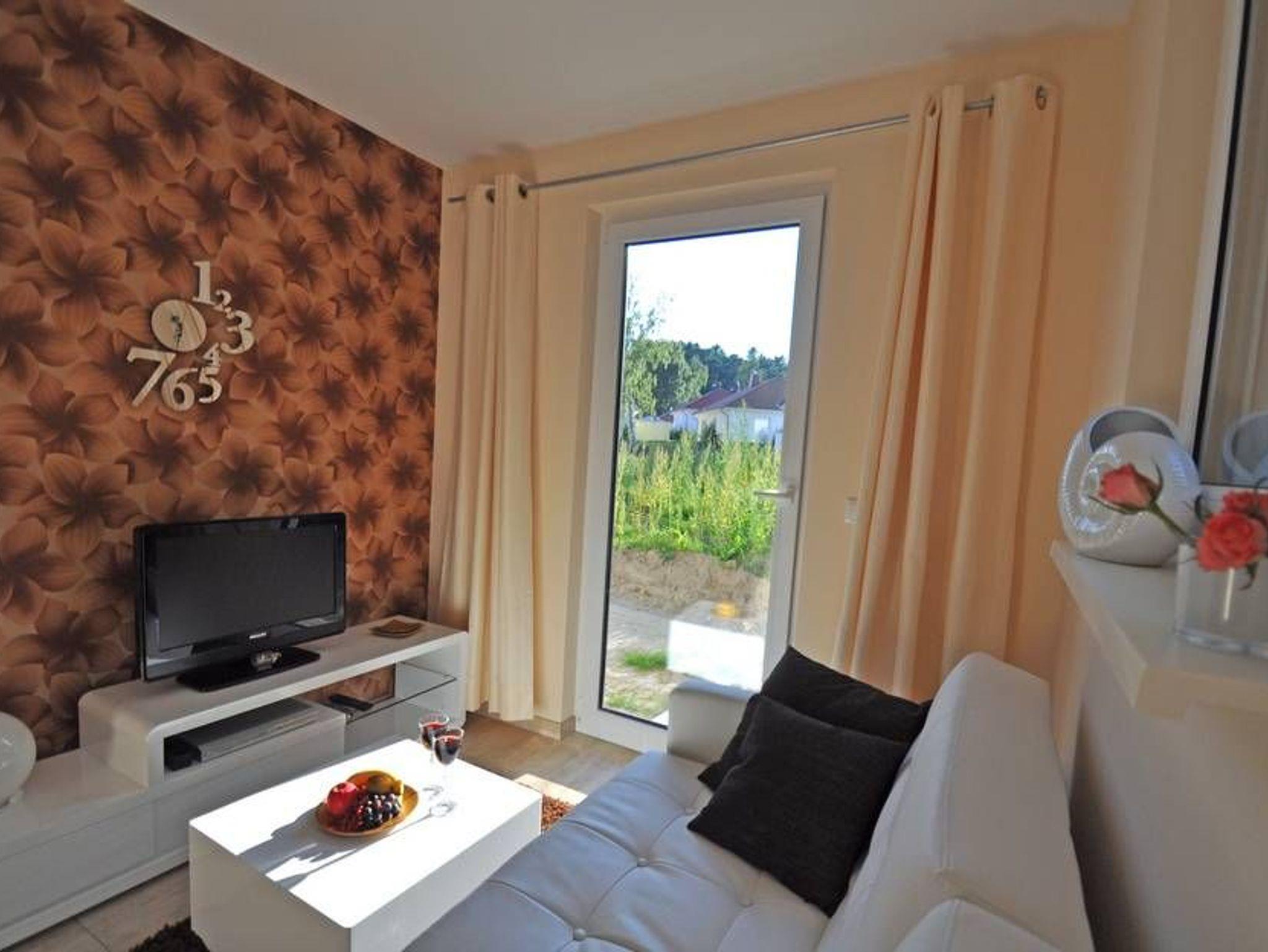 Das Ferienappartement mit Fußbodenheizung liegt im Erdgeschoss eines Wohnhauses und verfügt über einen separaten Eingang. Es ist ca. 30m² groß, bietet Platz für maximal 2 Gäste, wurde modern, hochwertig und liebevoll eingerichtet. Im Wohnraum befinden sich eine bequeme Couch mit Tisch und ein modernes Flachbild-TV-Gerät.
