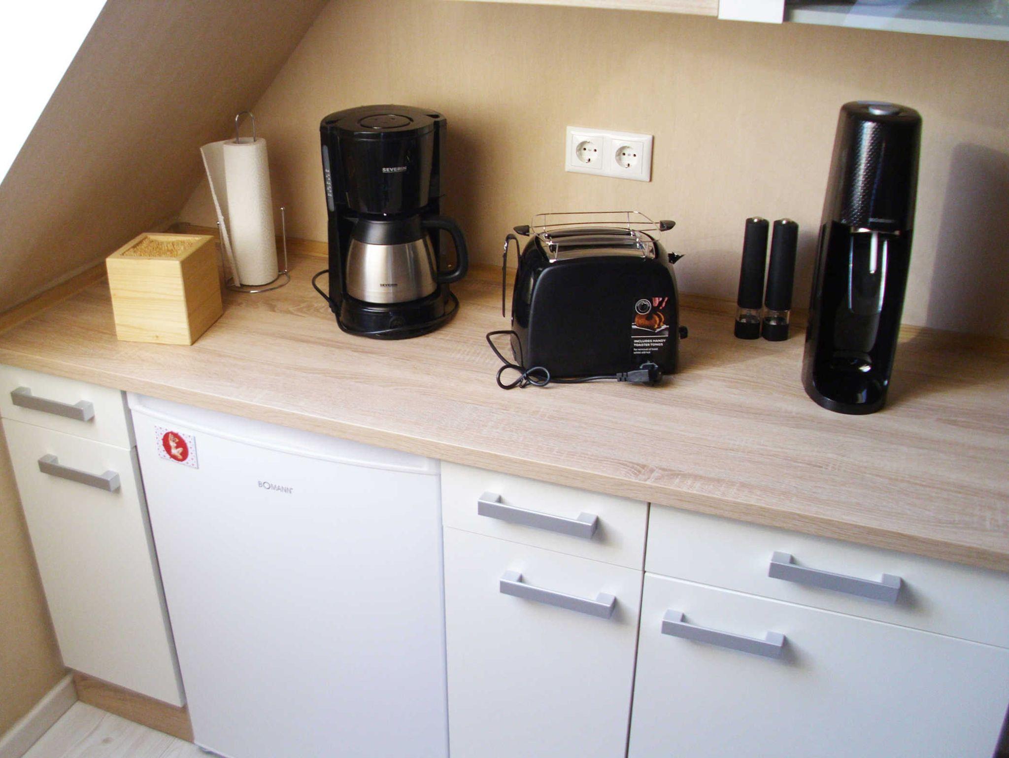 ? Frühstücksecke mit Esstisch, Kühlschrank, Mikrowelle, Toaster, Kaffeemaschine, Wasser - und