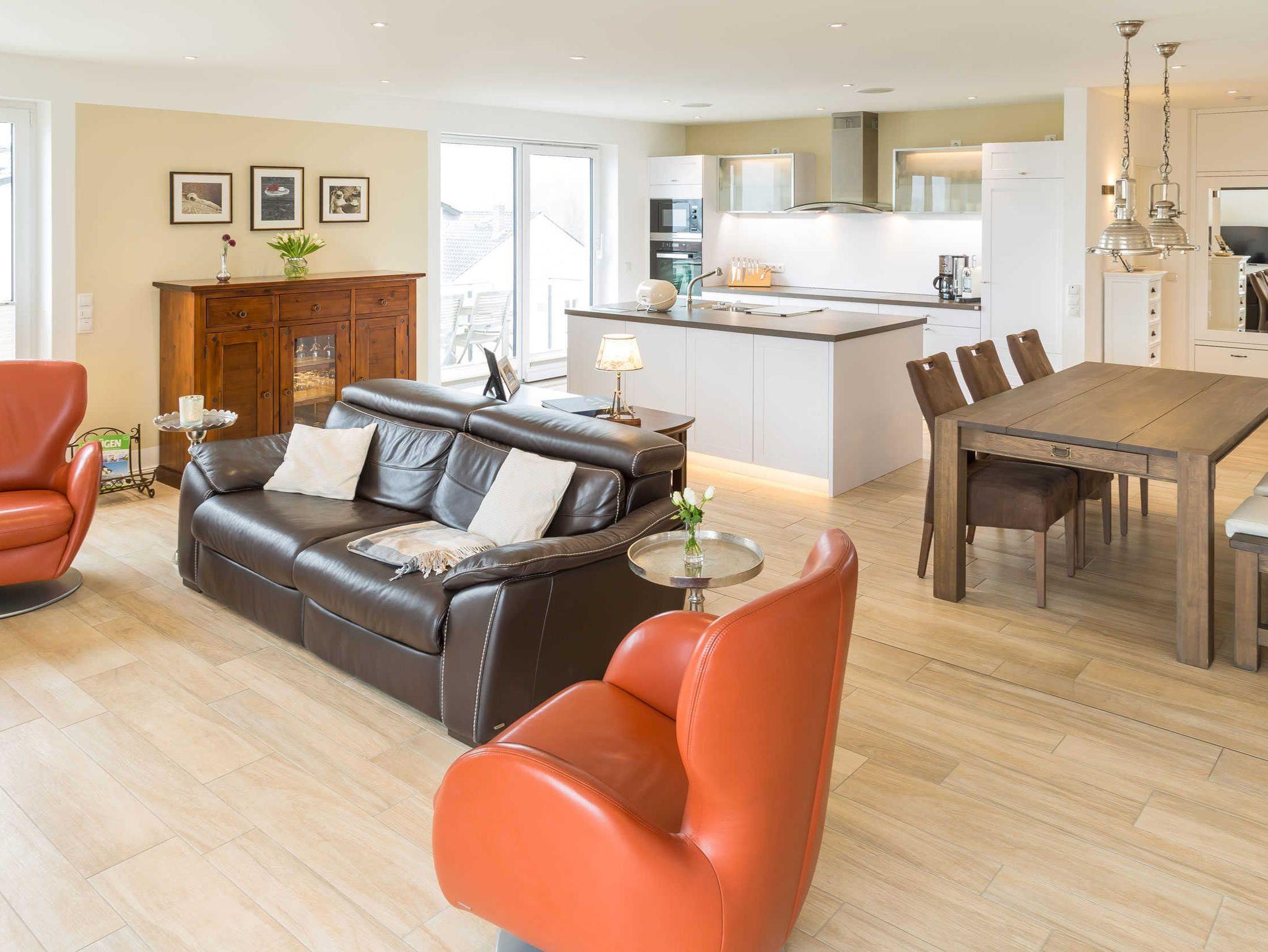 ? Die komplett und hochwertig eingerichtete Küche ist offen zum Wohnbereich und lässt keine Wünsche offen.