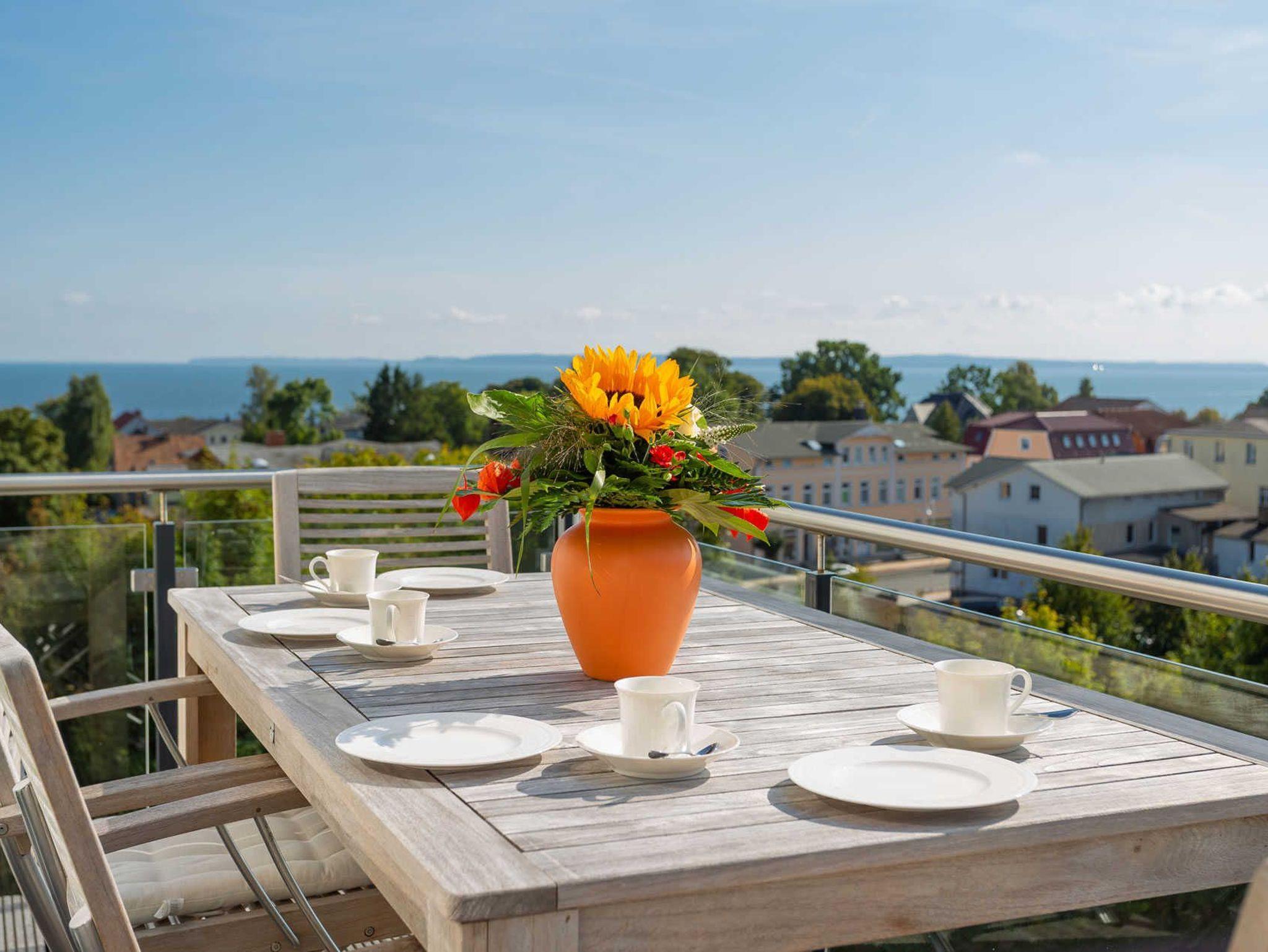 ? Die möblierte Dachterrasse bietet Ihnen einen traumhaften Panoramablick über die Stadt auf die Ostsee.
