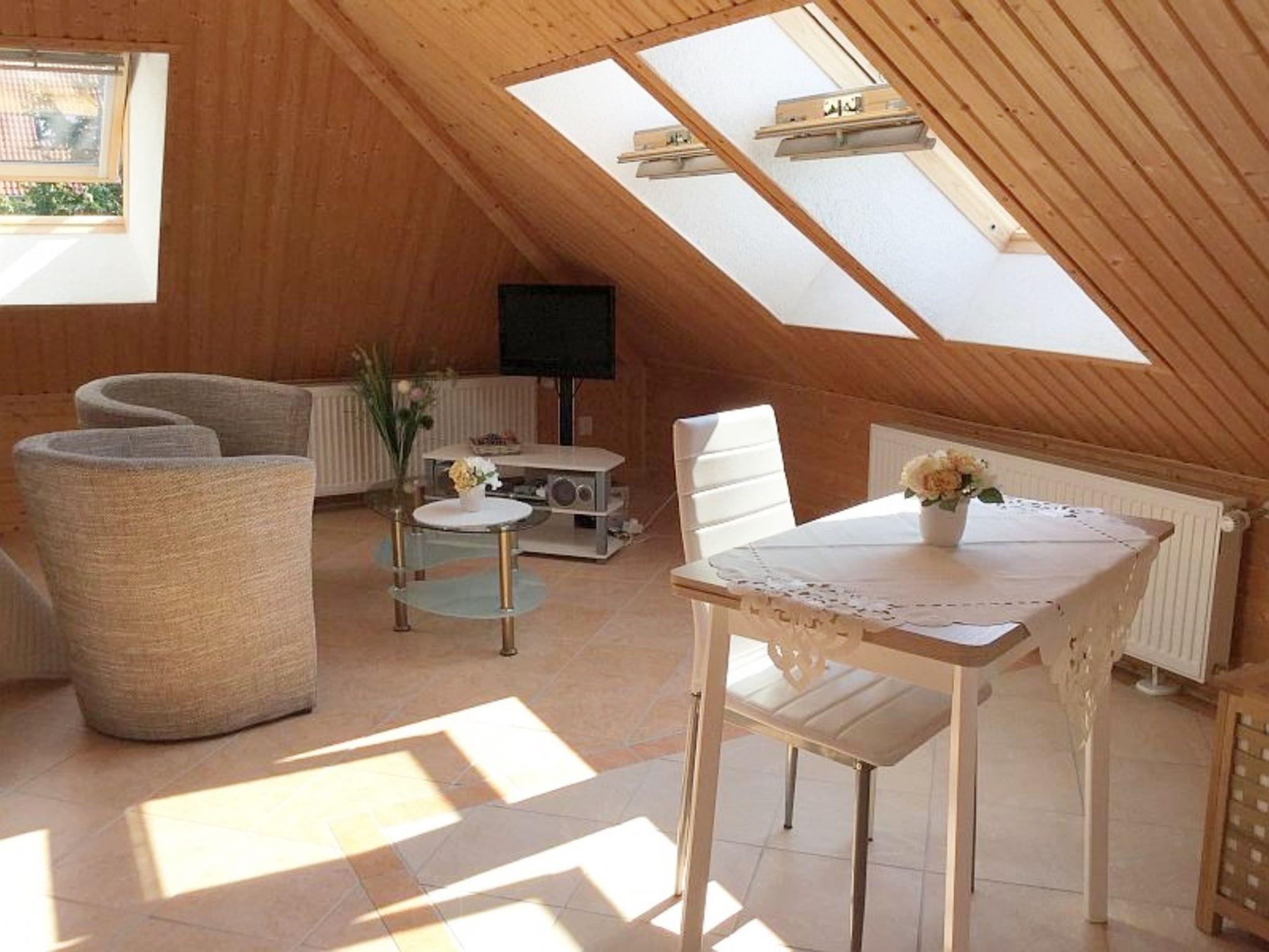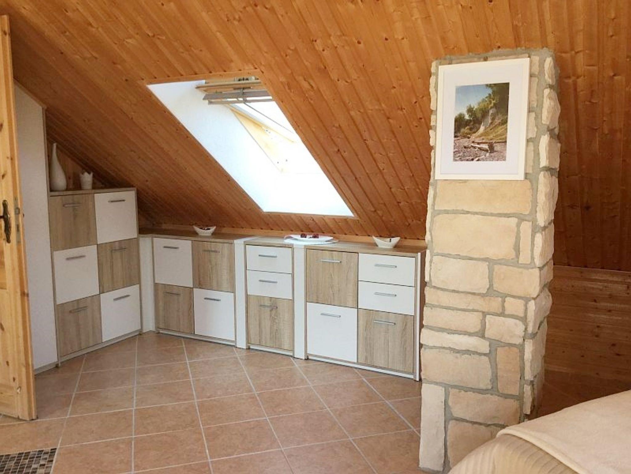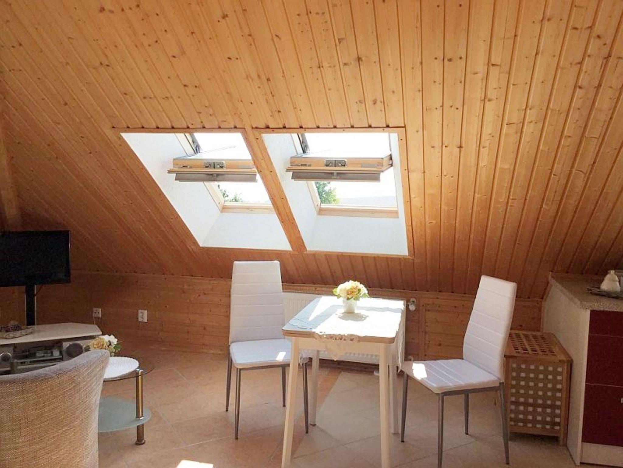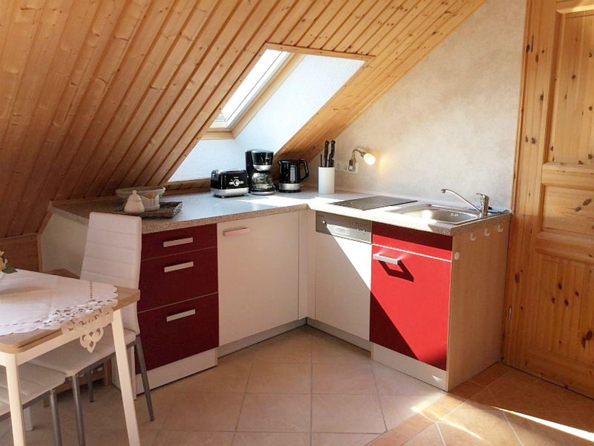 Die abgeschlossene Ferienwohnung befindet sich im Dachgeschoß im Haus des Vermieters.