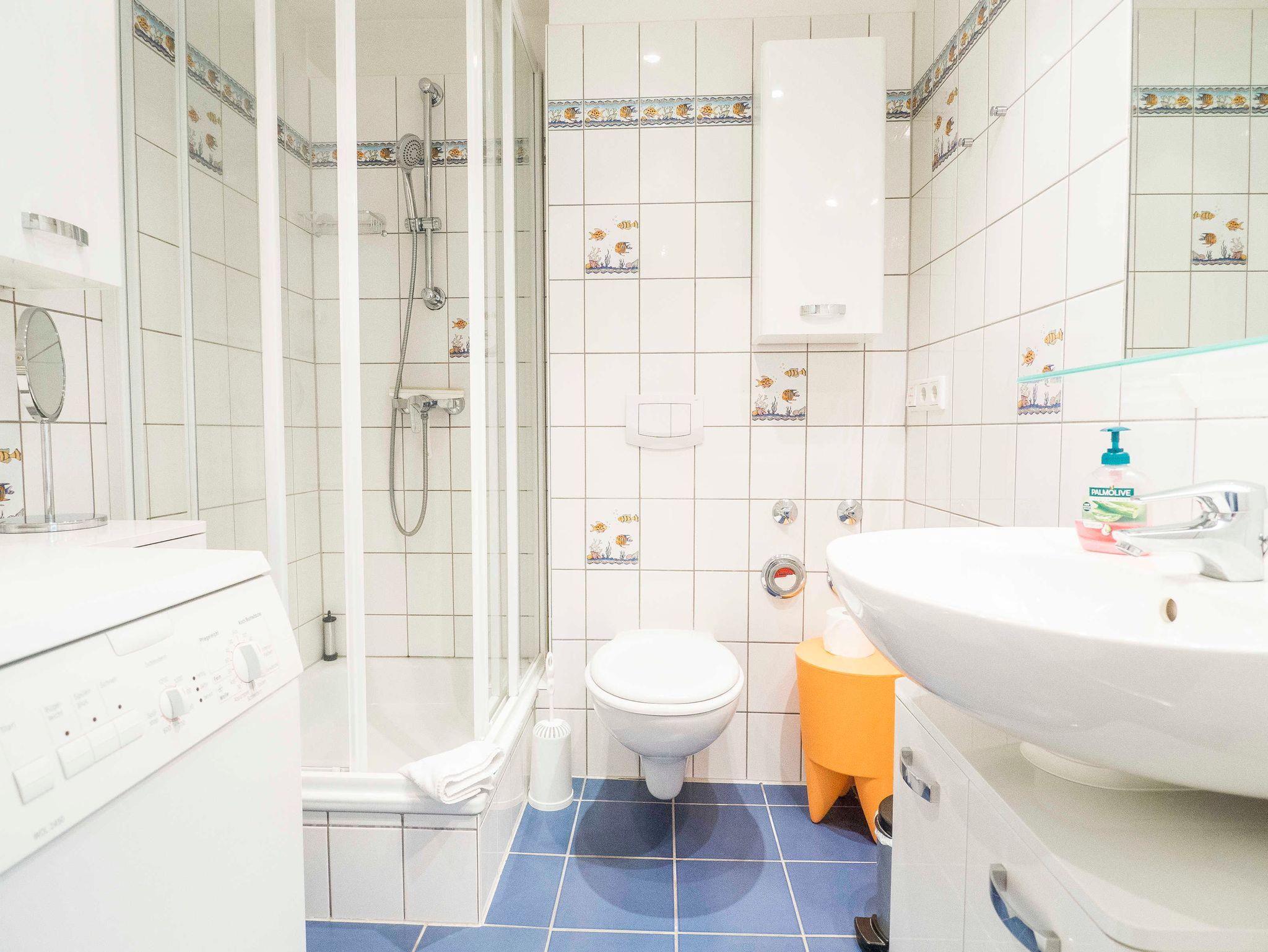 Im Flur finden Sie zwei großzügige Wandschränke mit Schiebtüren für Ihre persönlichen Sachen und Bedarfsgegenstände. Die Wohung verfügt über eine Waschmaschiene sowie Bügelbrett und Dampfbügeleisen.