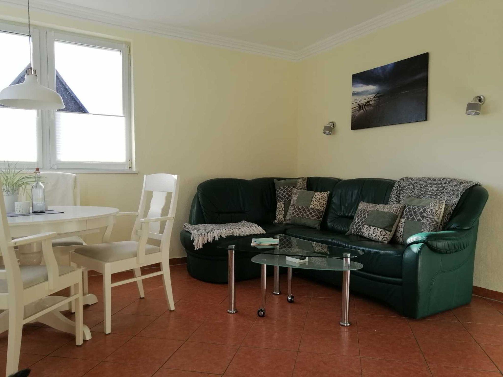 Die gemütliche Wohnung ist eingeteilt in eine Küche mit Sitzplätzen für 4 Personen, einem großen Bad mit Dusche, Wanne und WC, Schlafzimmer und Wohnzimmer.