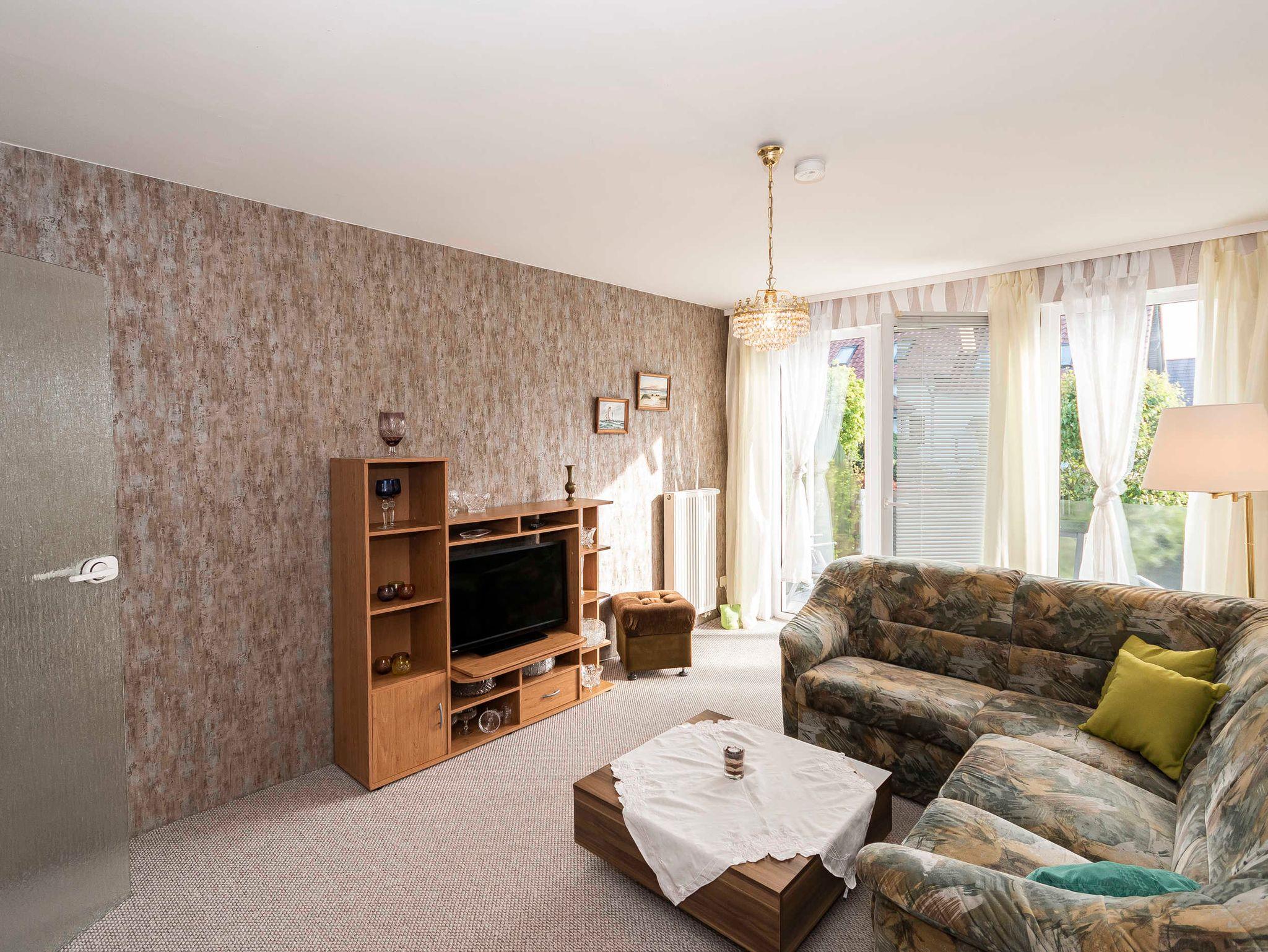 ? Wohnraum mit Couchgarnitur, Radio, TV, und CD-Player