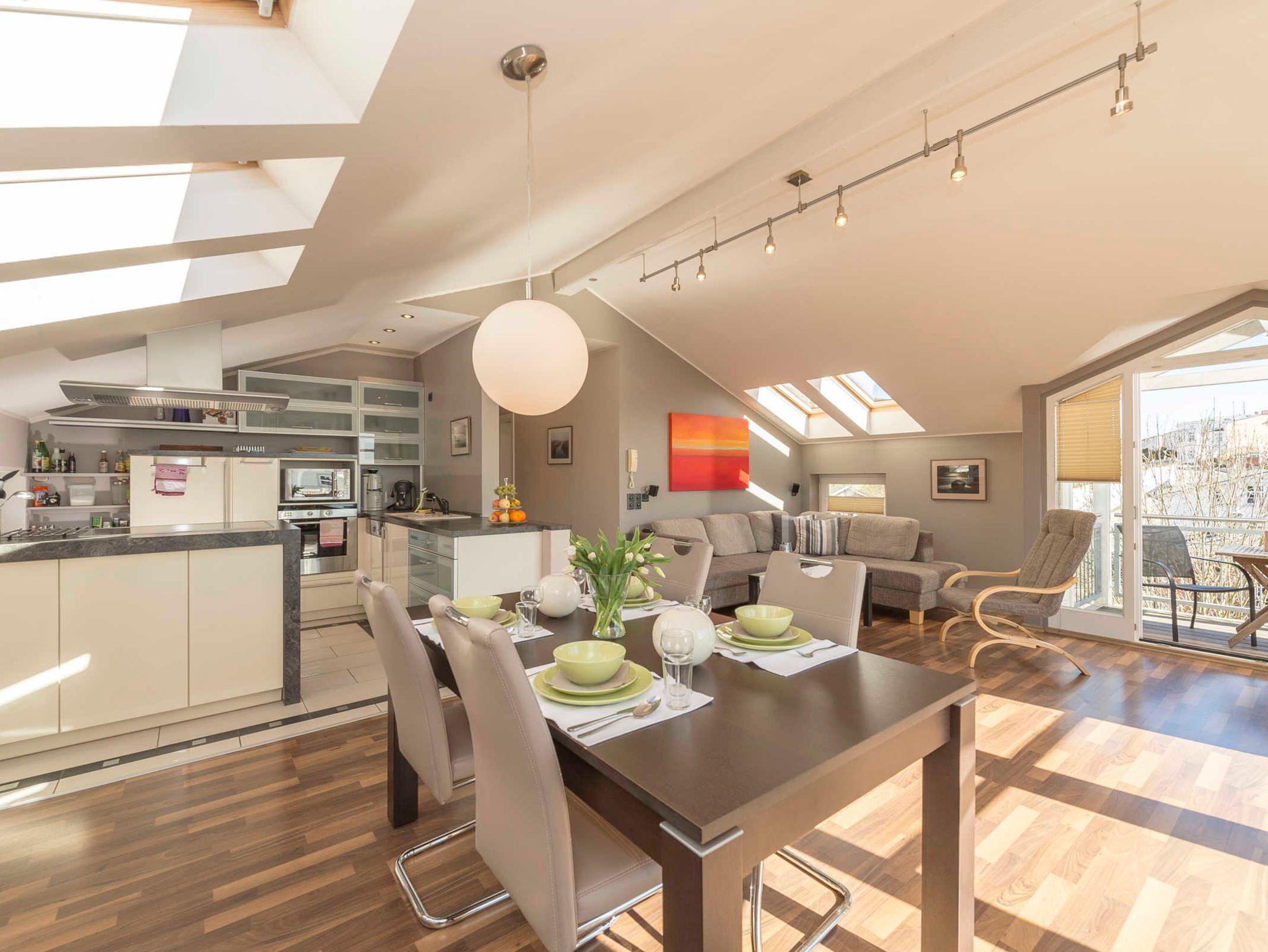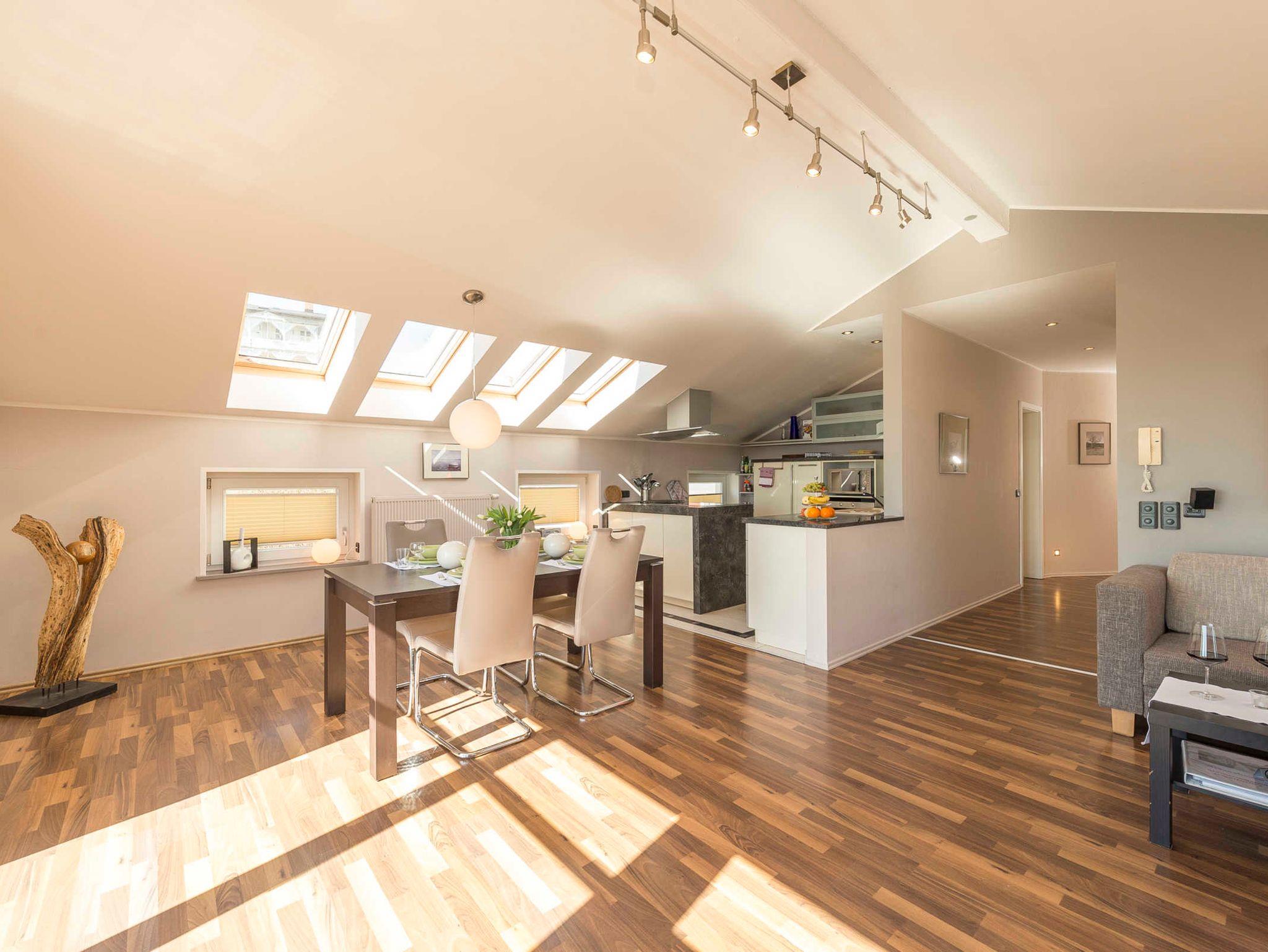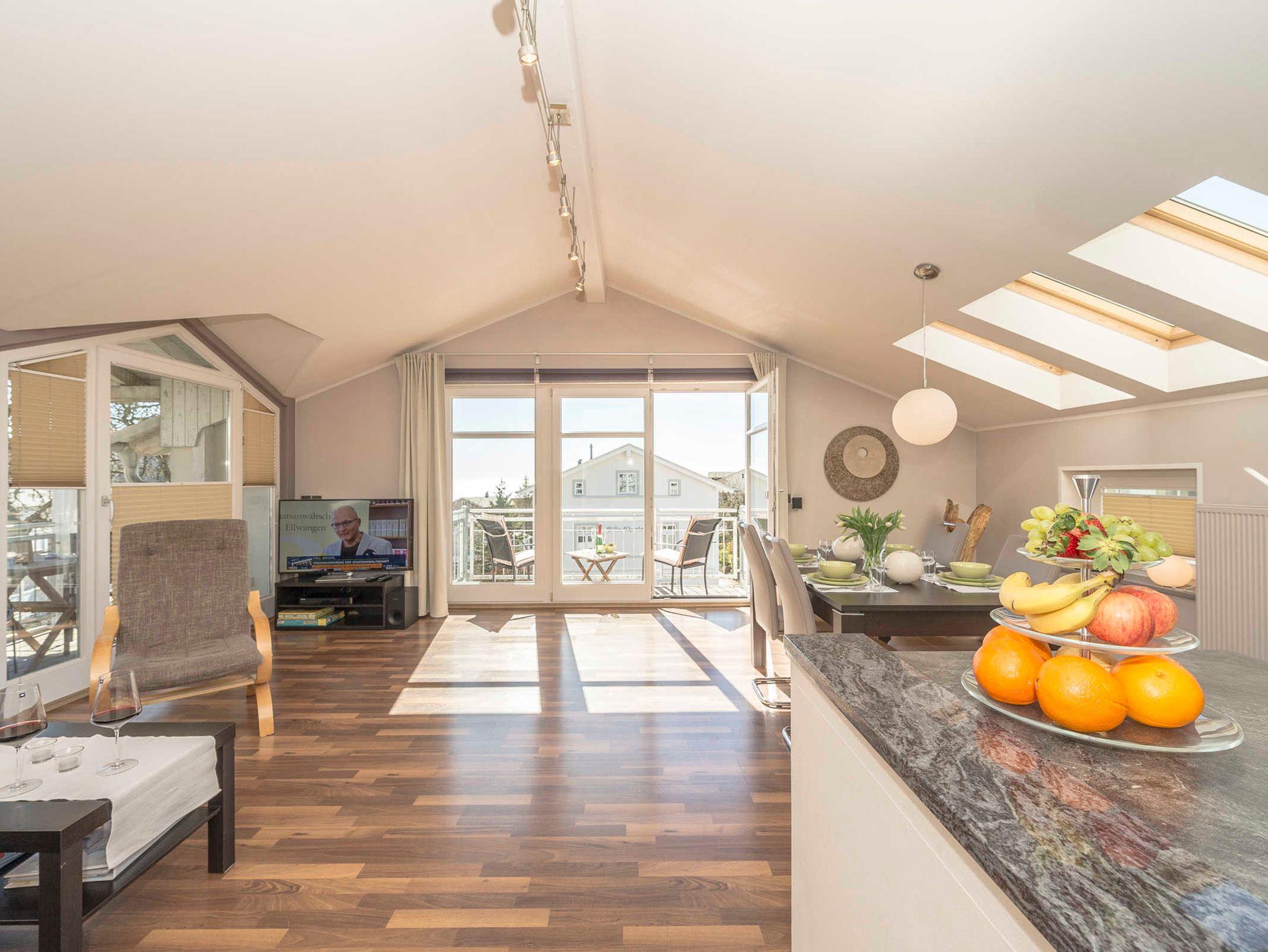 Luxus für die ganze Familie - Seeblick inklusive - 3-Raum-Wohnung im Dachgeschoss, 80 qm, Wohnraum mit integrierter Einbauküche, 2 Schlafzimmer, Bad, Abstellraum, 2 Balkone, mit Ostseeblick, Fußbodenheizung in allen Räumen, Internetzugang