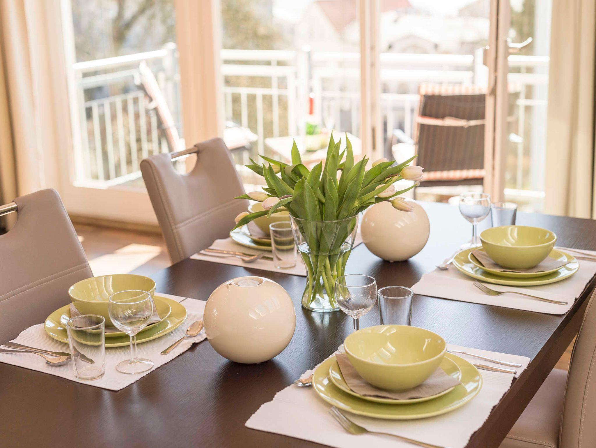 Alle Appartements bieten getrennte Wohn- und Schlafzimmer, großzügige Badezimmer mit Dusche und WC sowie eine voll ausgestattete Einbauküche im Wohnzimmer. Zudem verfügen die Wohnungen über eine Terrasse oder einen Balkon in den Appartements Nr. 3, 4 und 7 sogar mit seitlichem oder direktem Blick auf die Ostsee.