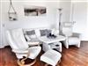 Der geräumige und gemütliche Wohnbereich erwartet Sie mit Ledersofa und Relax-Sesseln, sowie offener voll ausgestatteter Wohnküche. Der Kaffeegenießer kann zwischen Filterkaffee und Kaffeepads wählen. Für Kaffee-Latte gibt es einen Milchaufschäumer.