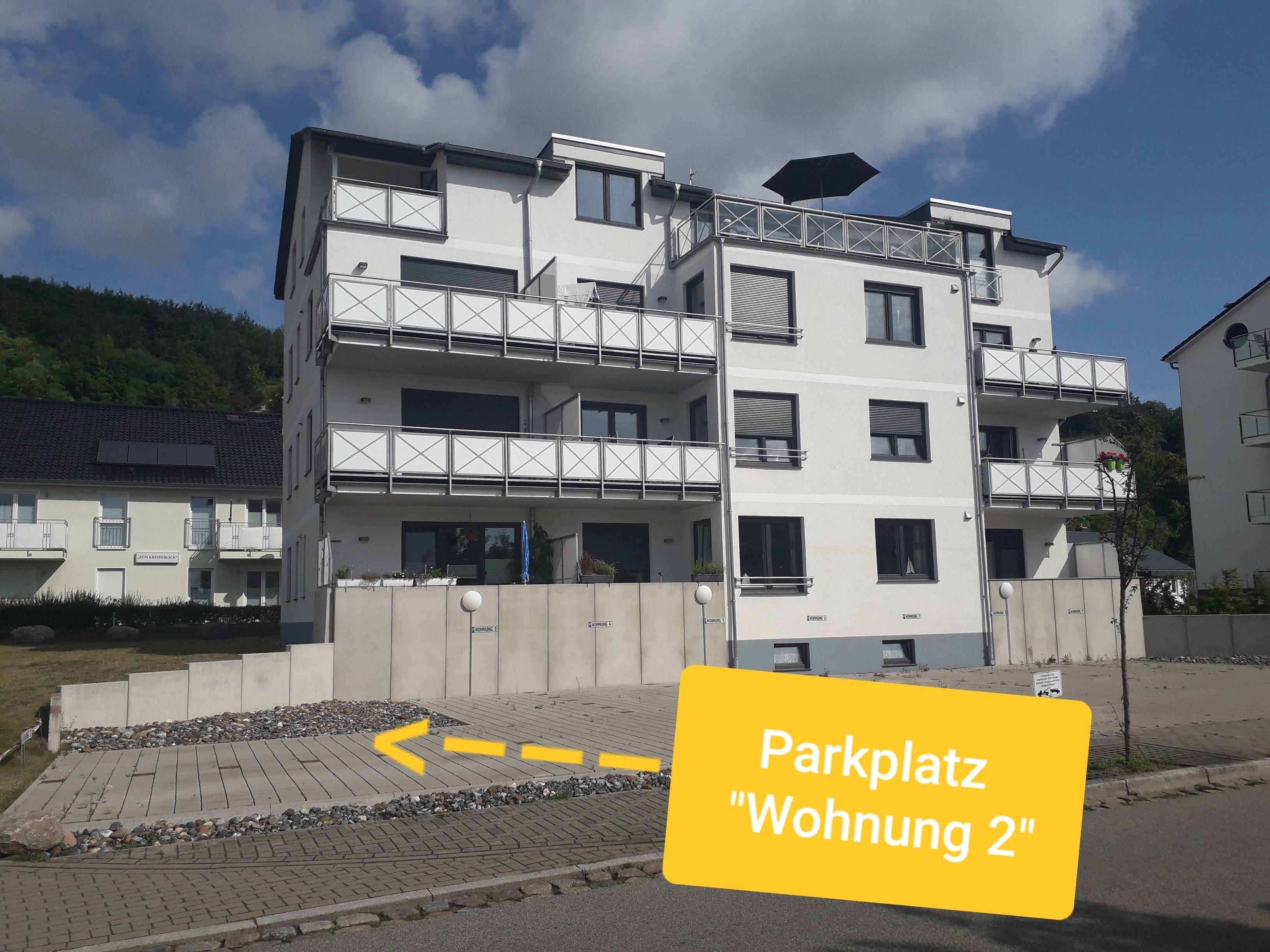 Direkt am Gebäude ist der Parkplatz "Wohnung 2" für Sie reserviert.