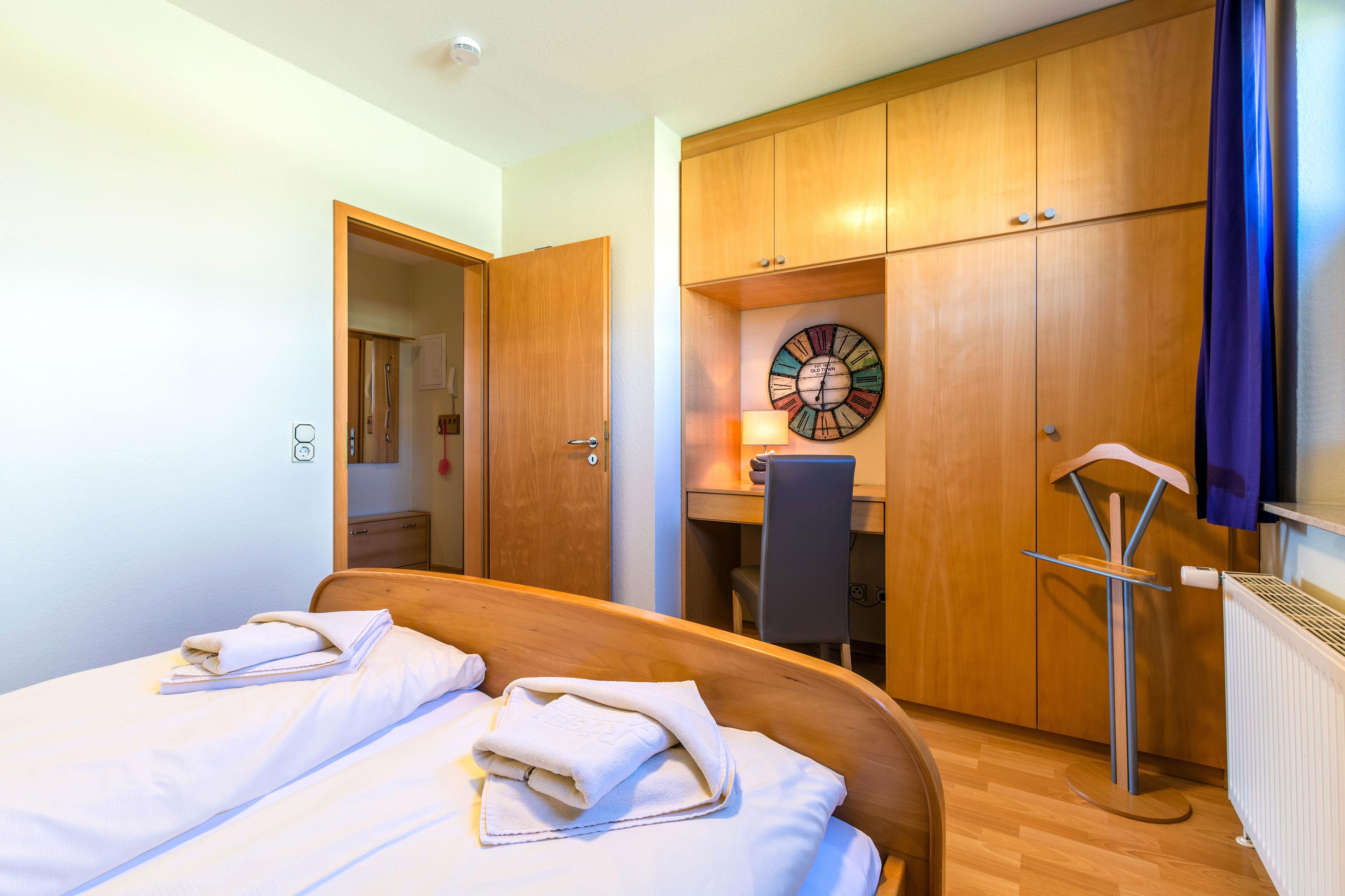 Im Schlafzimmer bietet Ihnen ein Doppelbett ausreichend Platz für einen erholsamen Schlaf. Ihre Urlaubskleidung können Sie im geräumigen Kleiderschrank unterbringen.