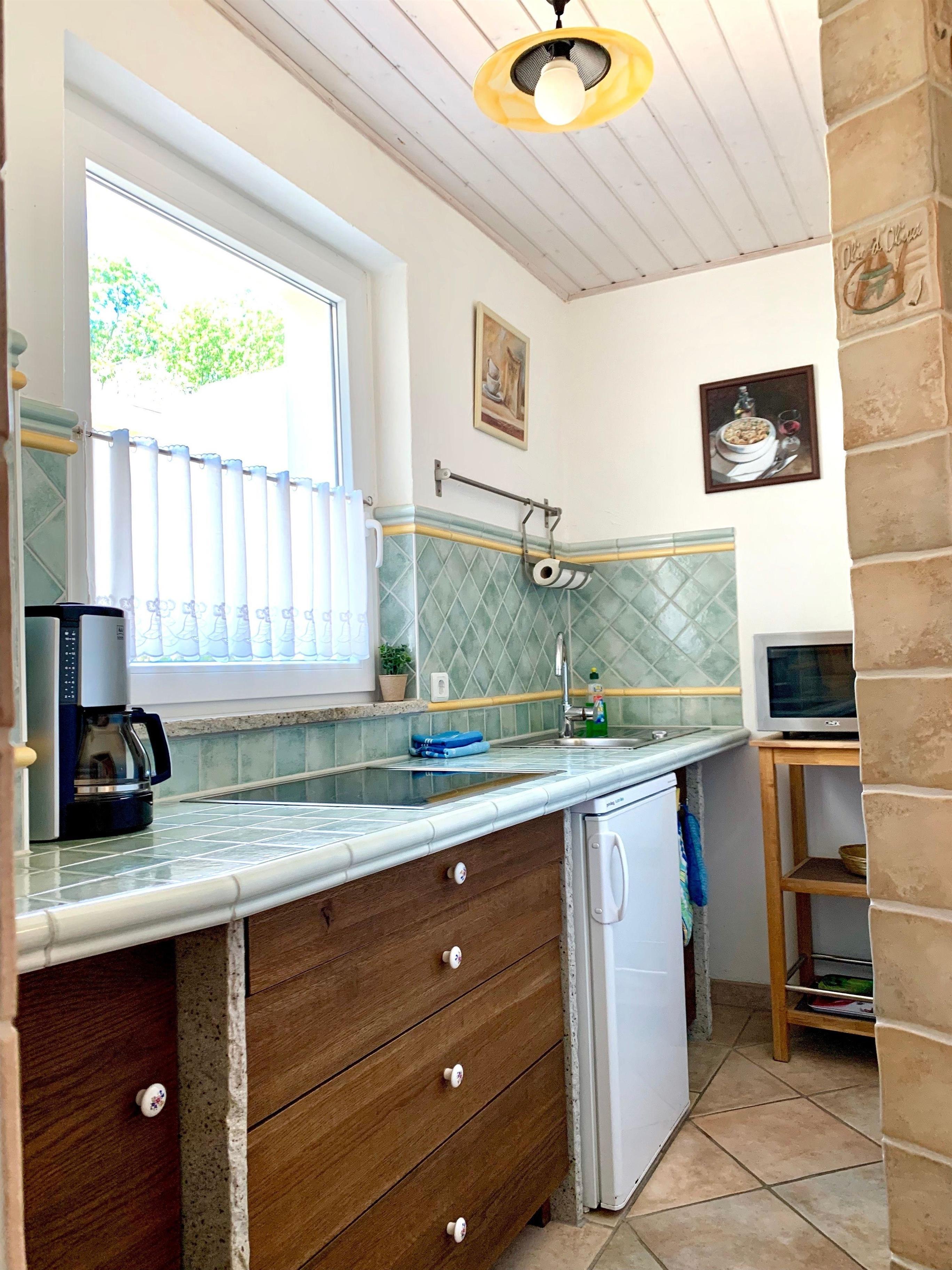 Die gemütlich eingerichtete Wohnung verfügt über ein Wohnzimmer mit angrenzender Terrasse, Schlafzimmer mit Doppelbett, praktischer Küche und modernen Bad mit Dusche.
