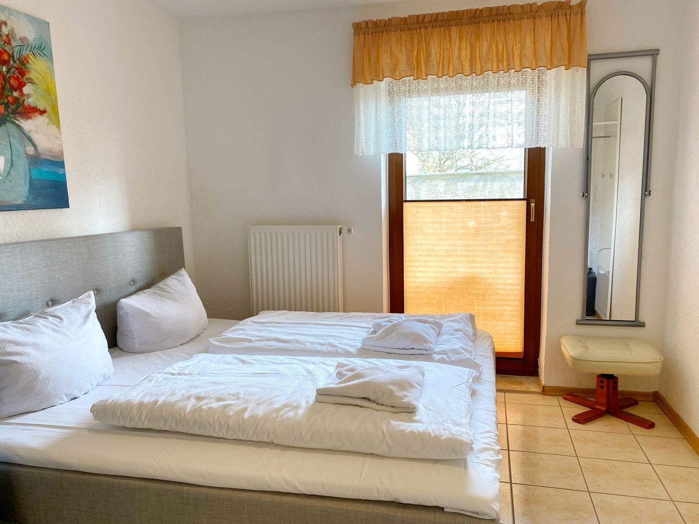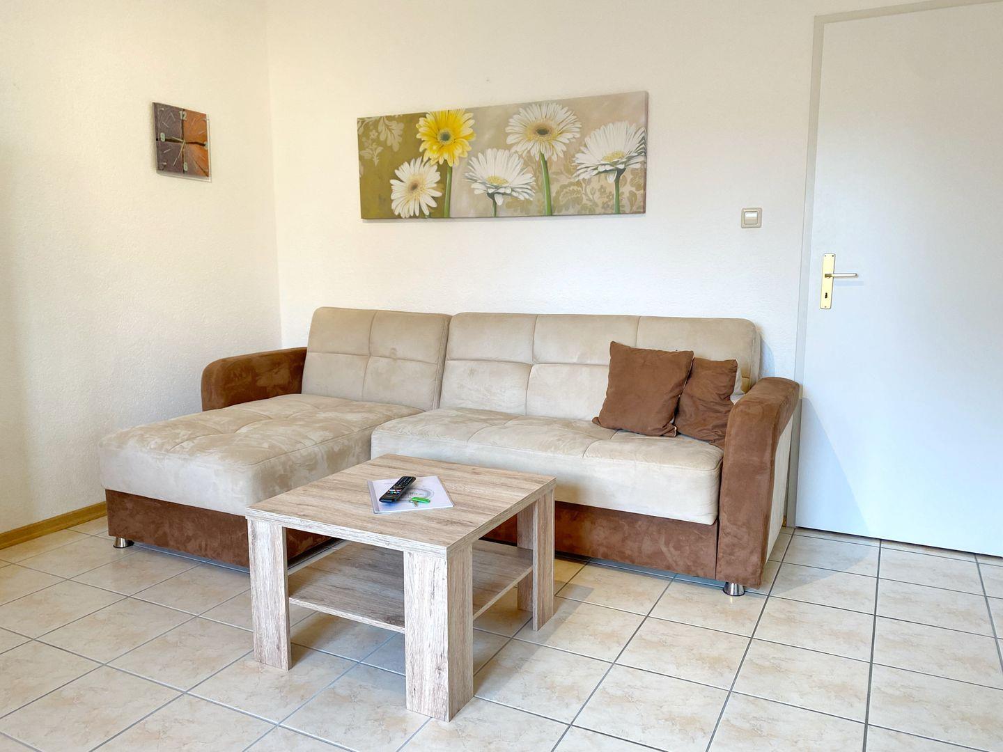 Die 2-Raum-Ferienwohnung ist ca. 42 qm groß, befindet sich im Erdgeschoss und ist über die Terrasse erreichbar. Von hier kommend gelangt man in das Wohnzimmer mit gemütlicher Sitzecke, SAT-TV, DVD-Player und Radio. Das Schlafzimmer verfügt über ein Doppelbett und Kleiderschrank. Die separate Küche mit Esstisch bietet u.a. eine Mikrowelle, Ceranfeld, Kühl-/Gefrier- kombination, Toaster, Wasserkocher, Kaffeemaschine, diverses Geschirr und einen Geschirrspüler. Die Wohnung verfügt über ein Bad mit Dusche/WC und Haartrockner. Es gibt in der Wohnung ein WLAN.