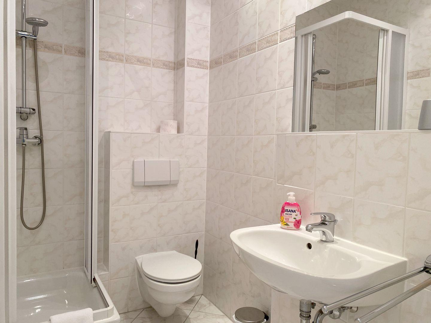 Das Bad bietet eine Dusche. WLAN ist vorhanden.