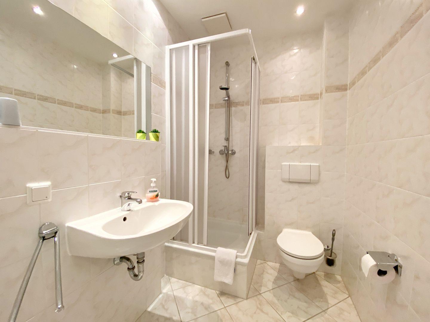 Das Bad bietet eine Dusche. WLAN ist vorhanden.