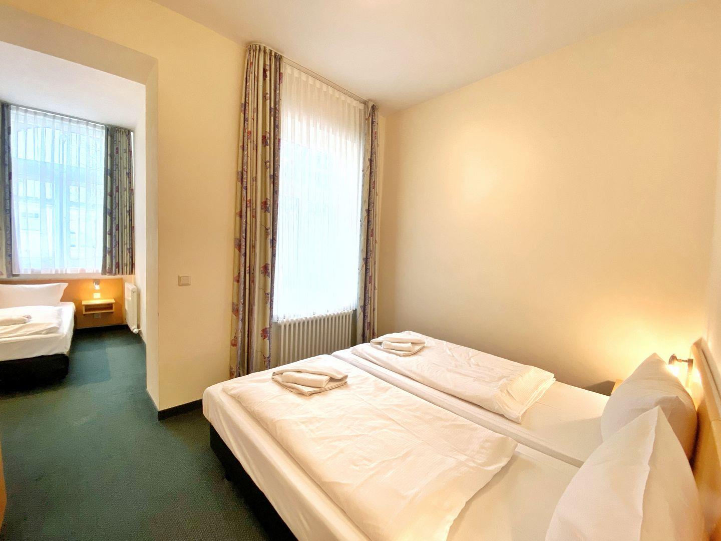Im Schlafzimmer gibt es jeweils ein bequemes Doppelbett und in einer Schlafnische mit Fenster ein Einzelbett.