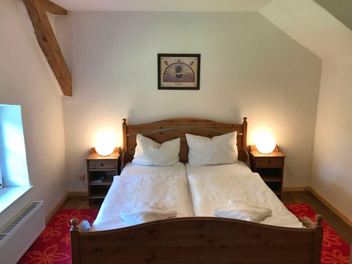 -niedliche Holzfenster vom Bett aus direkt in den großen Gutsgarten! Schlafen Sie in einem