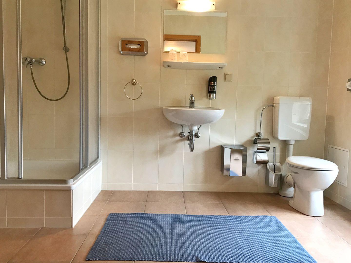 - Dusche mit fest installiertem Duschgel- Shampoo-Spender