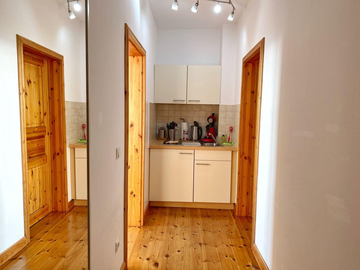 Raumaufteilung Wohnraum, Schlafzimmer, Pantry-Küche, Bad.