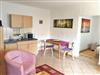 Im Wohn-Essraum finden Sie die Sitzecke und die Miniküche mit dem Esstisch vor. Ein Flachbild -TV steht für gemütliche Fernsehabende für Sie bereit. Zur Küche gehören ein Zweiplattenherd, eine Kaffeemaschine, ein Toaster und ein Wasserkocher, sowie ein Kühlschrank.