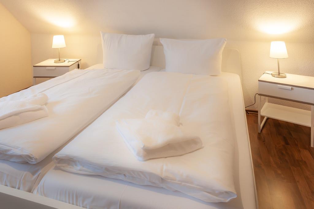 Ein Schlafzimmer ist mit einem Doppelbett ausgestattet, die beiden weiteren Schlafzimmer mit einem Doppelbett und je einem Einzelbett. Außerdem haben alle Schlafzimmer einen zusätzlichen TV.