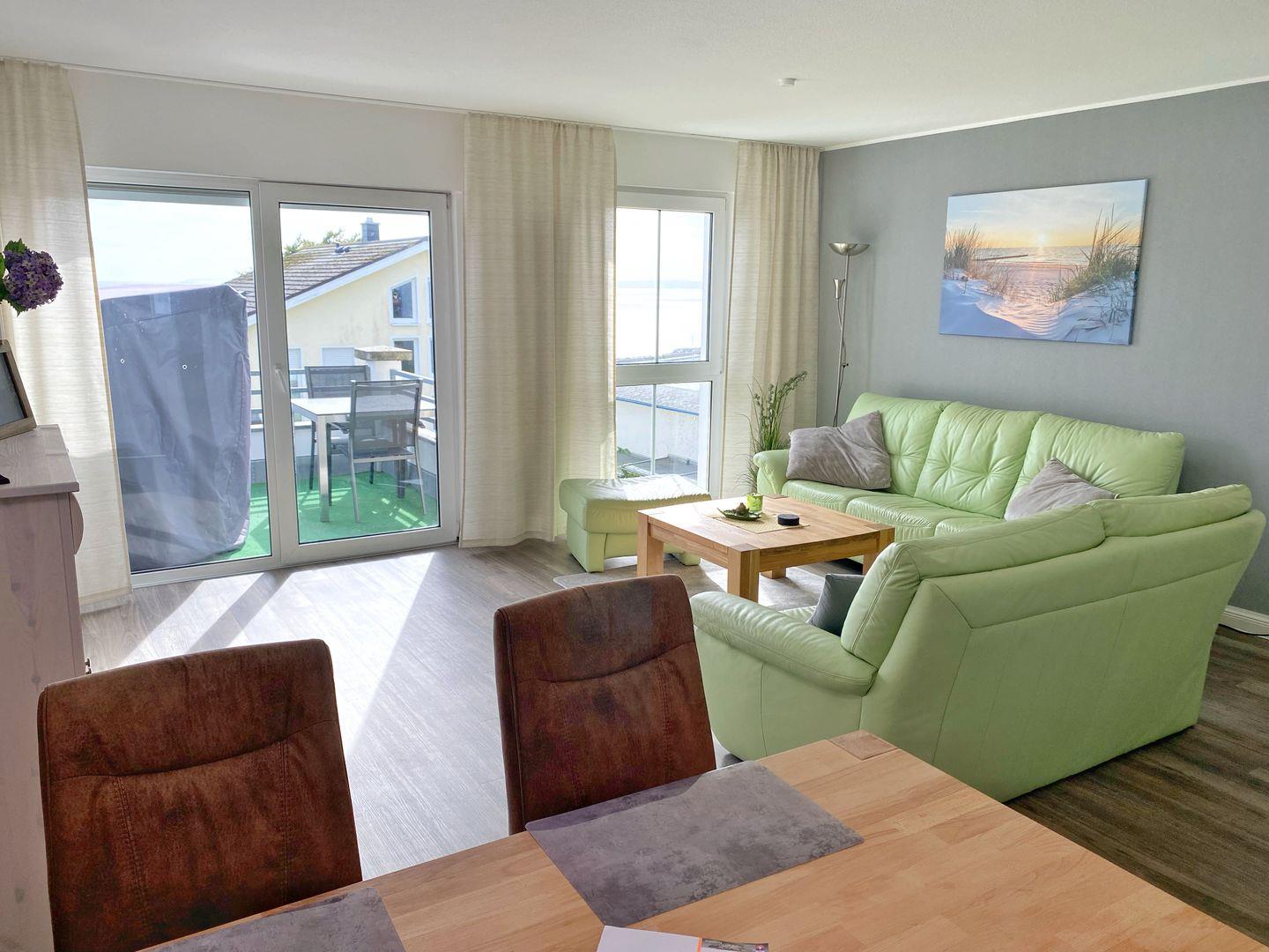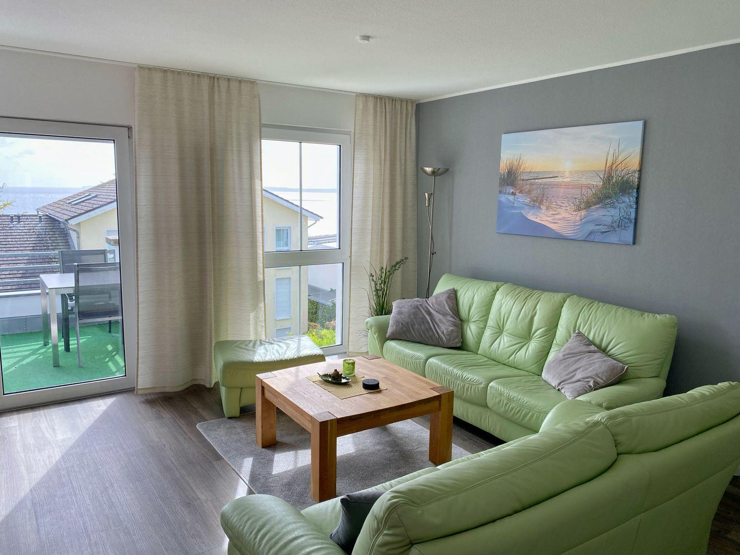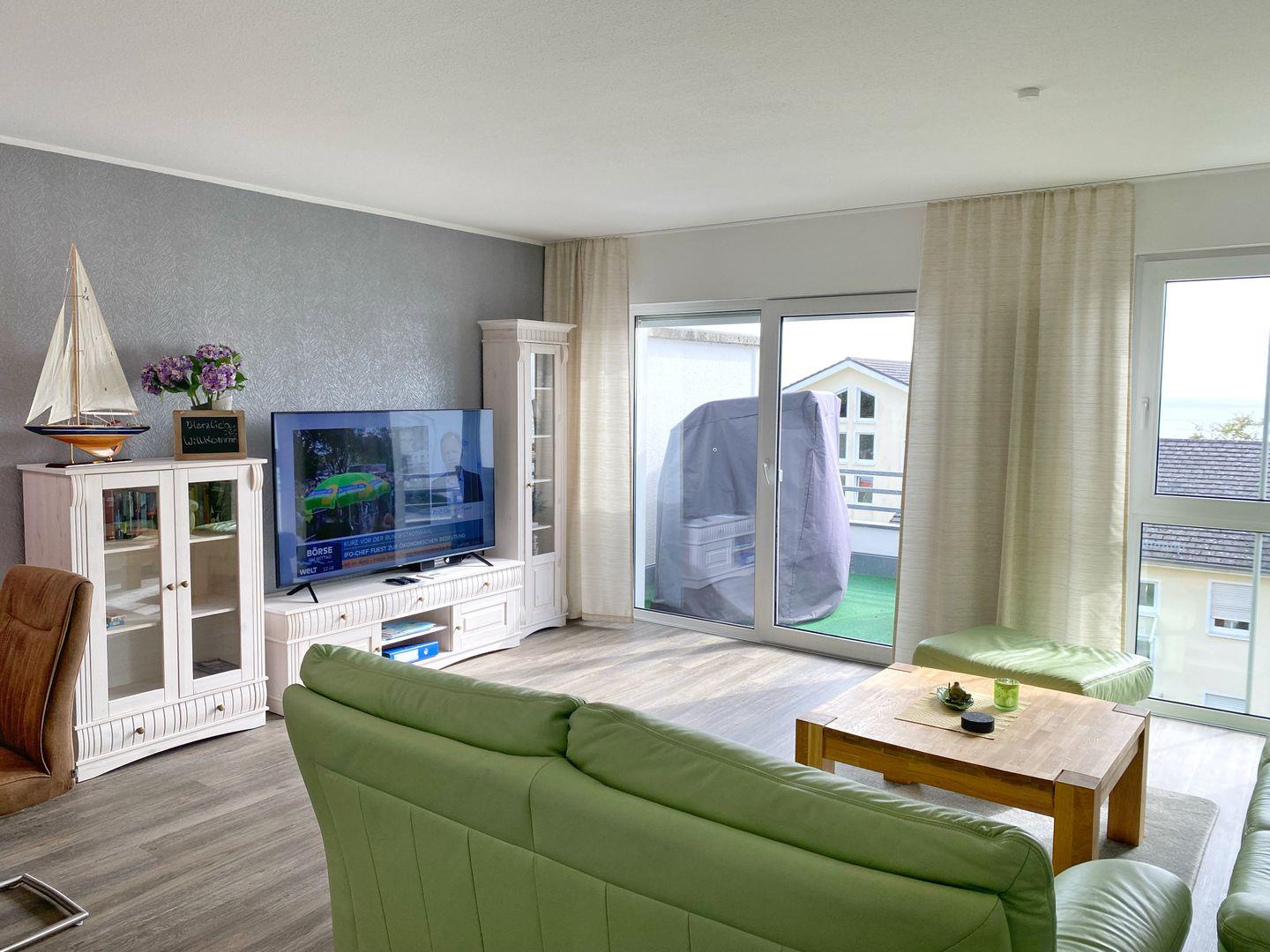 Penthaus-Wohnung mit Balkon, Strandkorb und Meerblick