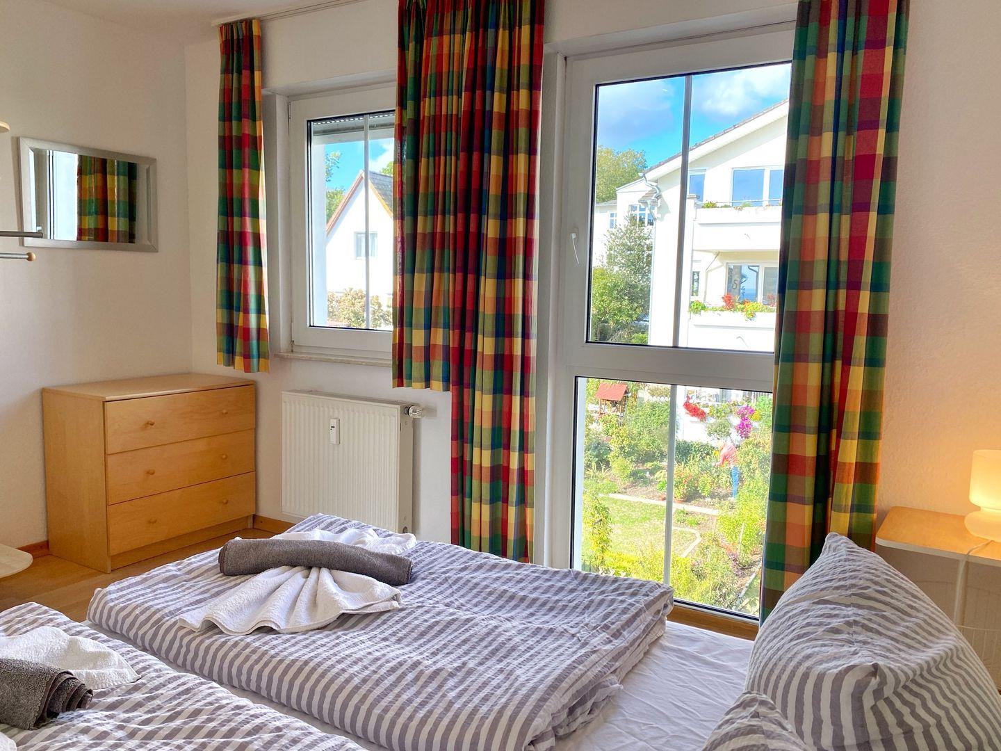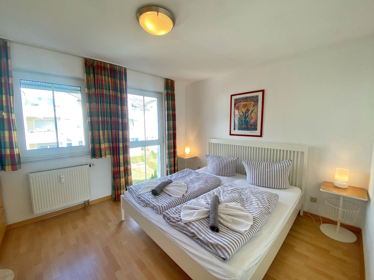 Die lichtdurchflutete Wohnung “Meeresrauschen” liegt im Dachgeschoß (2.OG) dieser gepflegten Ferienanlage und verfügt über ein gemütliches Schlafzimmer mit Doppelbett und ein Badezimmer mit Badewanne und integrierter Dusche. Im großen, hellen Wohnzimmer ist auf der Couch ein Schlafplatz für eine 3. Person.