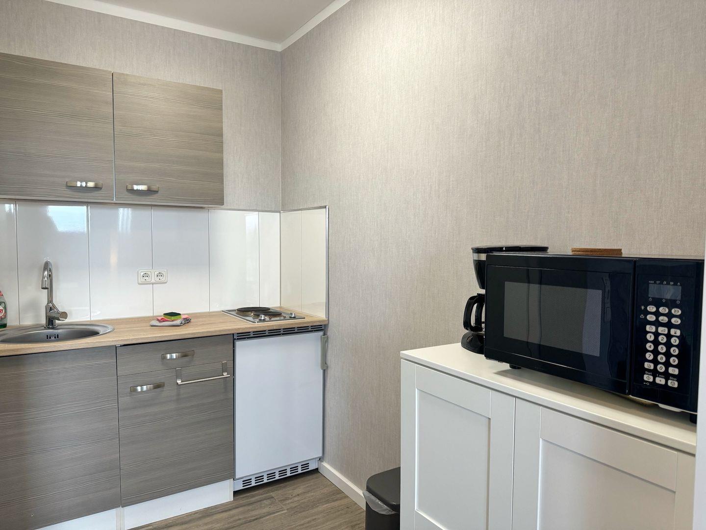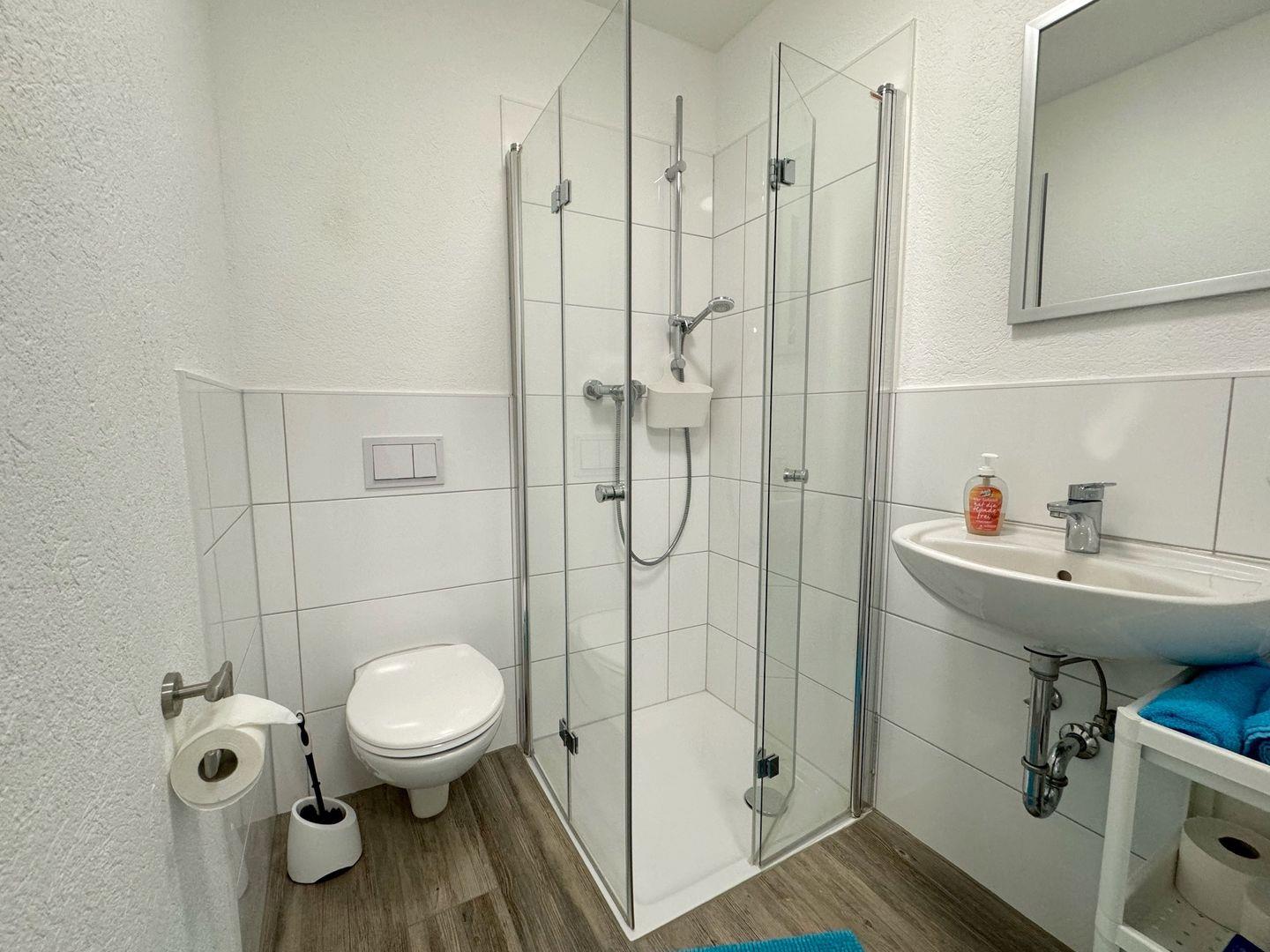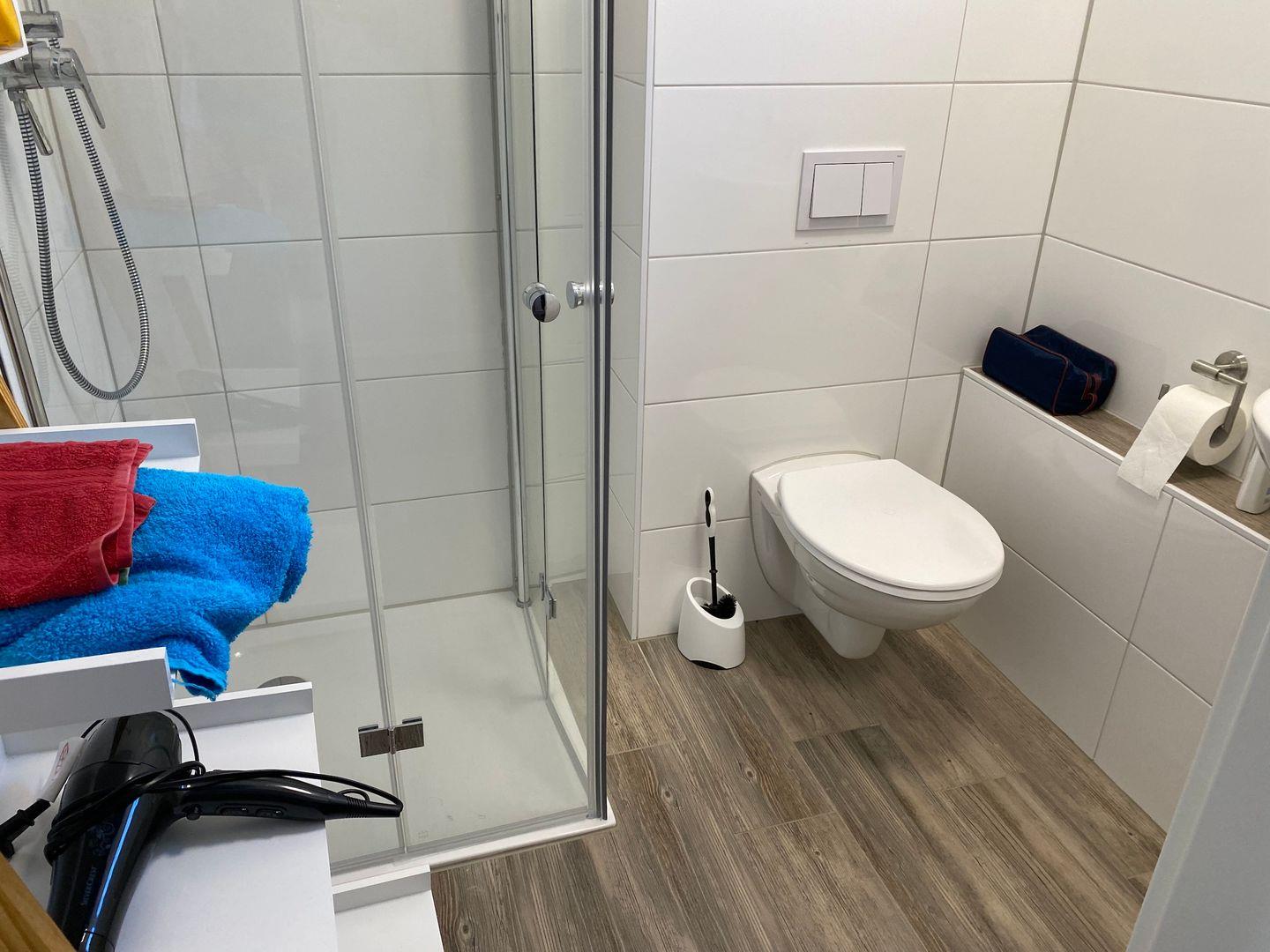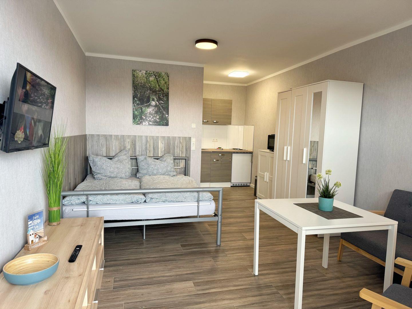 Die modern eingerichtete 1-Zimmer Ferienwohnung befindet sich im Erdgeschoß eines Einfamilienhauses. Der Raum ist unterteilt in den gemütlichen Wohnbereich mit Flachbild-TV und einem Esstisch, den Schlafbereich und im hinteren Bereich die Küche. Es gibt ein modernes Bad mit ebenerdiger Dusche. Zur Wohnung gehört eine Terrasse mit Gartenmöbeln und natürlich ein PKW-Stellplatz auf öffentlichem Gelände gegenüber vom Haus.