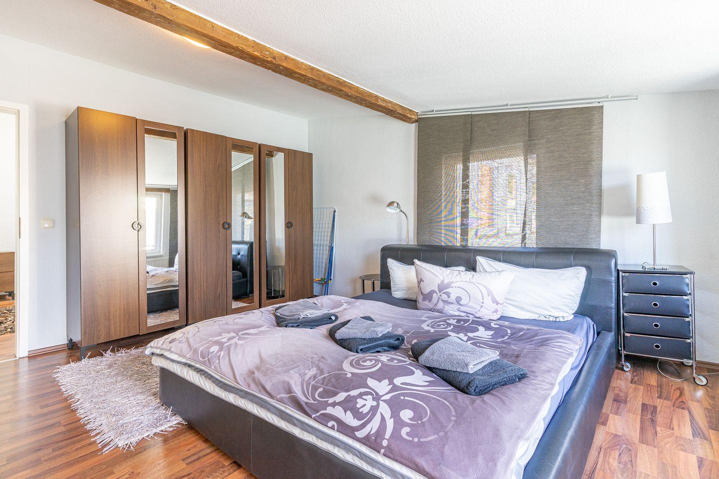 Es gibt zwei separate Schlafzimmer. Schlafzimmer 1 hat ein Doppelbett (180 x 200) und große Kleiderschränke mit Ganzkörperspiegel. Das Schlafzimmer 2 verfügt über zwei sehr großzügige Betten (140 x 200) und Kleiderschränke.