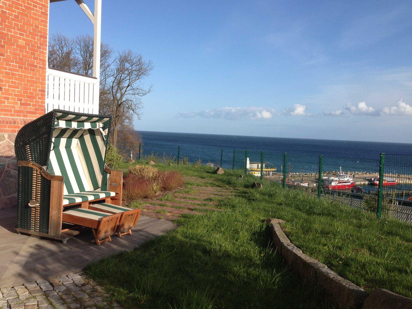 Terrasse, nach Süden ausgerichtet mit Strandkorb und einmaligen Meerblick