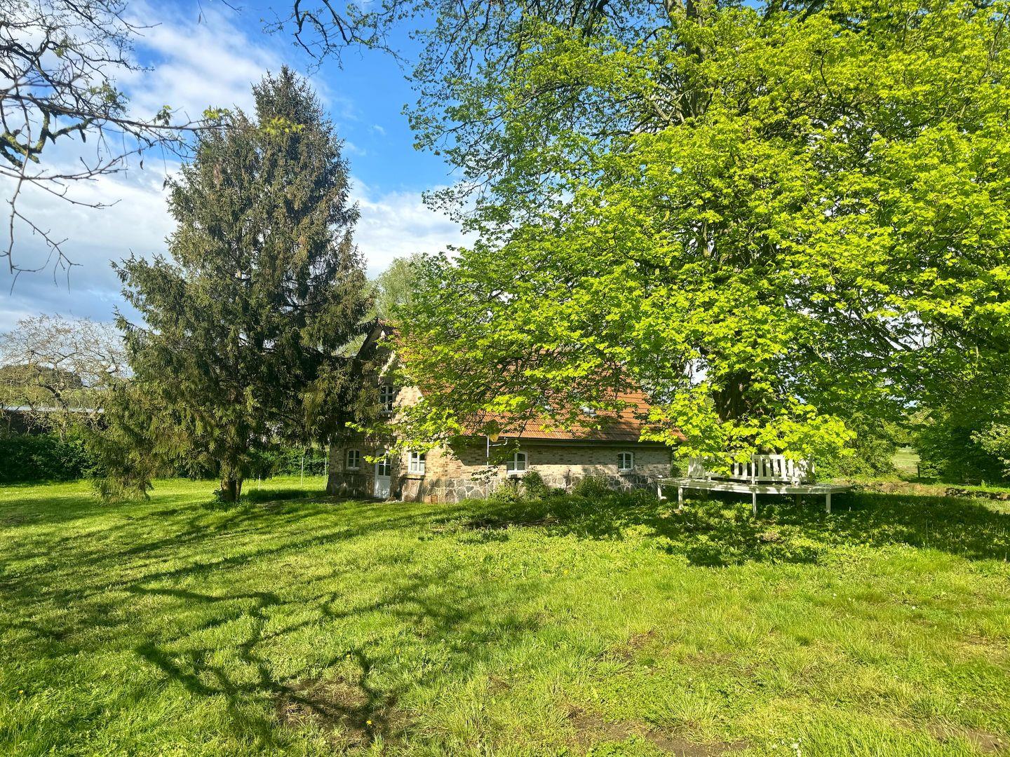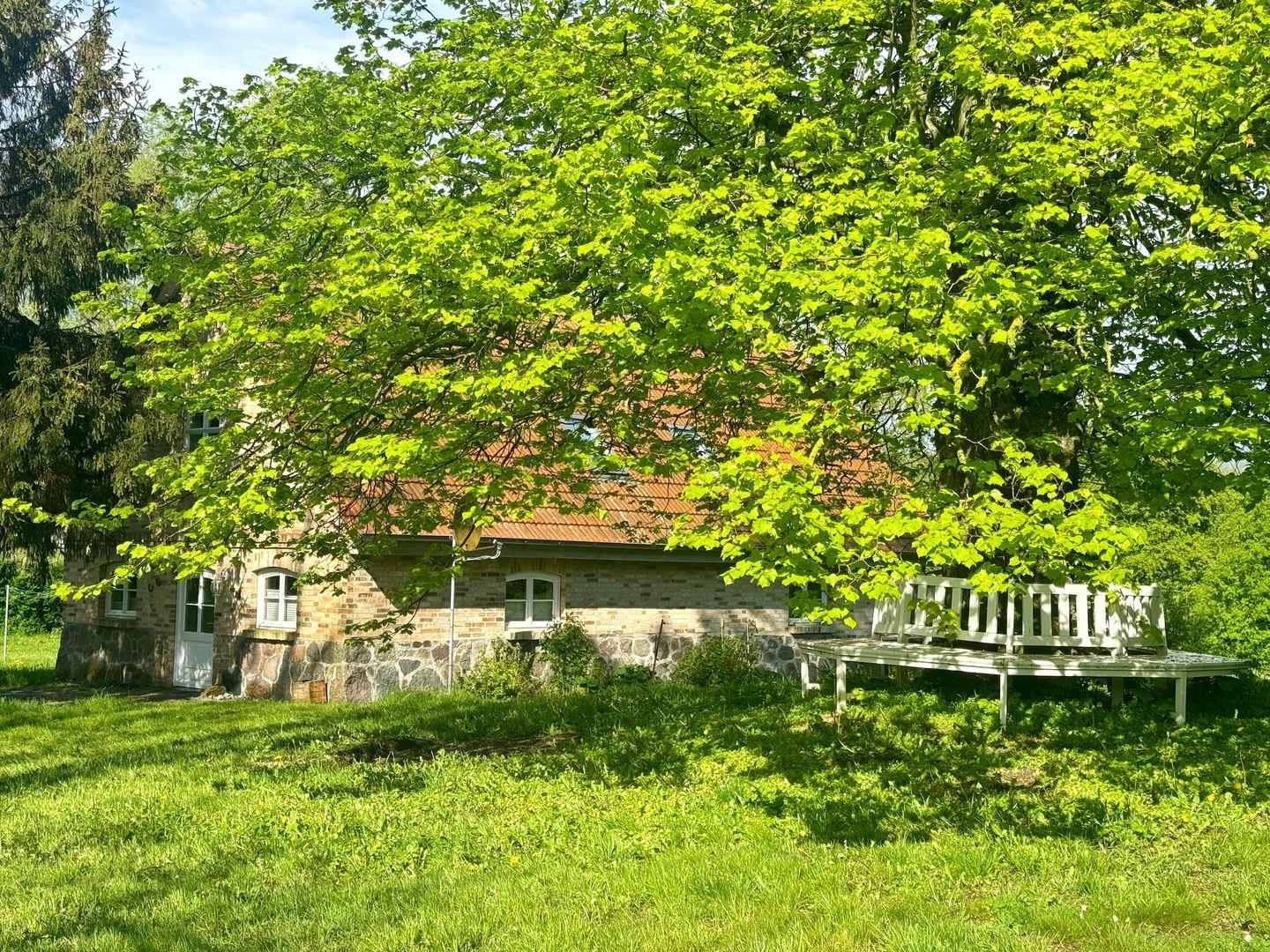 Das idyllische Ferienhaus steht in ruhiger Lage mitten im Grünen unter altem Baumbestand am Ortsrand von Dubnitz, einem Ortsteil der Hafenstadt Sassnitz.