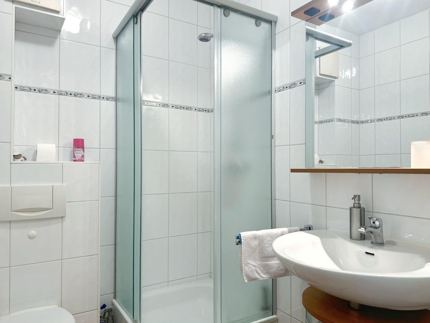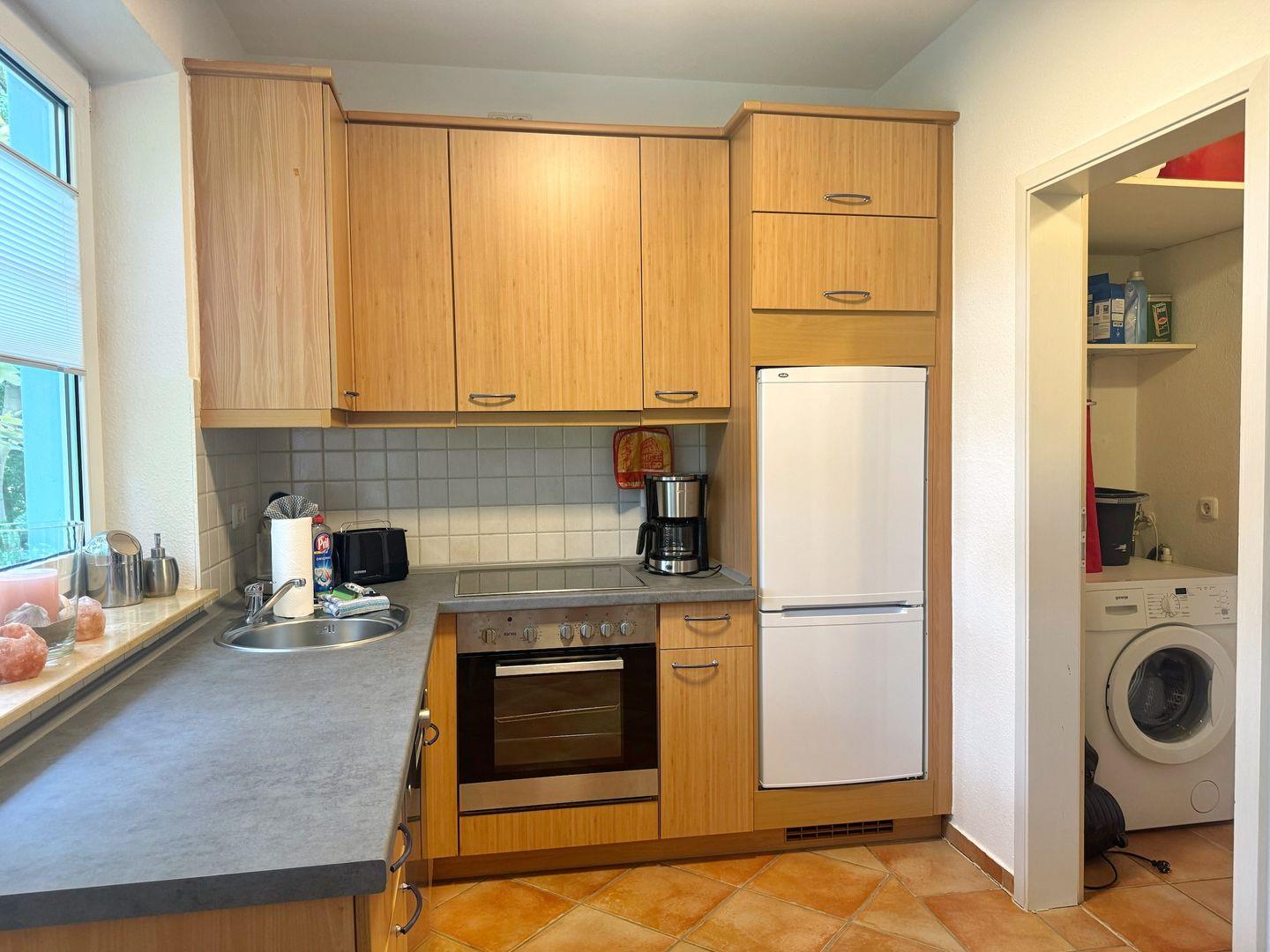 Die Ferienwohnung 5 in der Villa "Tizian" ist eine 2-Zimmer-Wohnung für maximal 2 Personen mit Balkon. Auf 48qm Wohnfläche befinden sich ein Schlafzimmer mit Doppelbett und ein Wohnzimmer mit einer gemütlichen Sofaecke und Flachbildfernseher. Im Wohnbereich integriert ist eine komplett ausgestattete Küchenzeile sowie ein Esstisch. Neben der Küche gibt es einen kleinen Abstellraum. mit einer Waschmaschine. Das Badezimmer verfügt über eine Dusche, ein Waschbecken und natürliche eine Toilette.