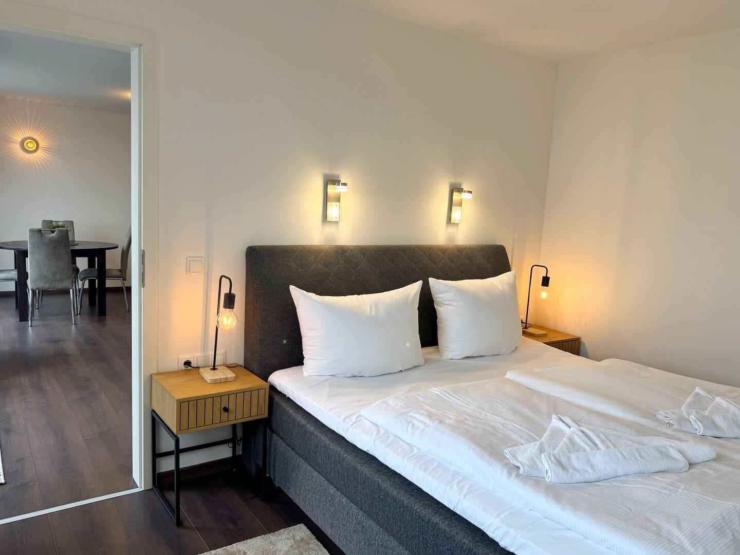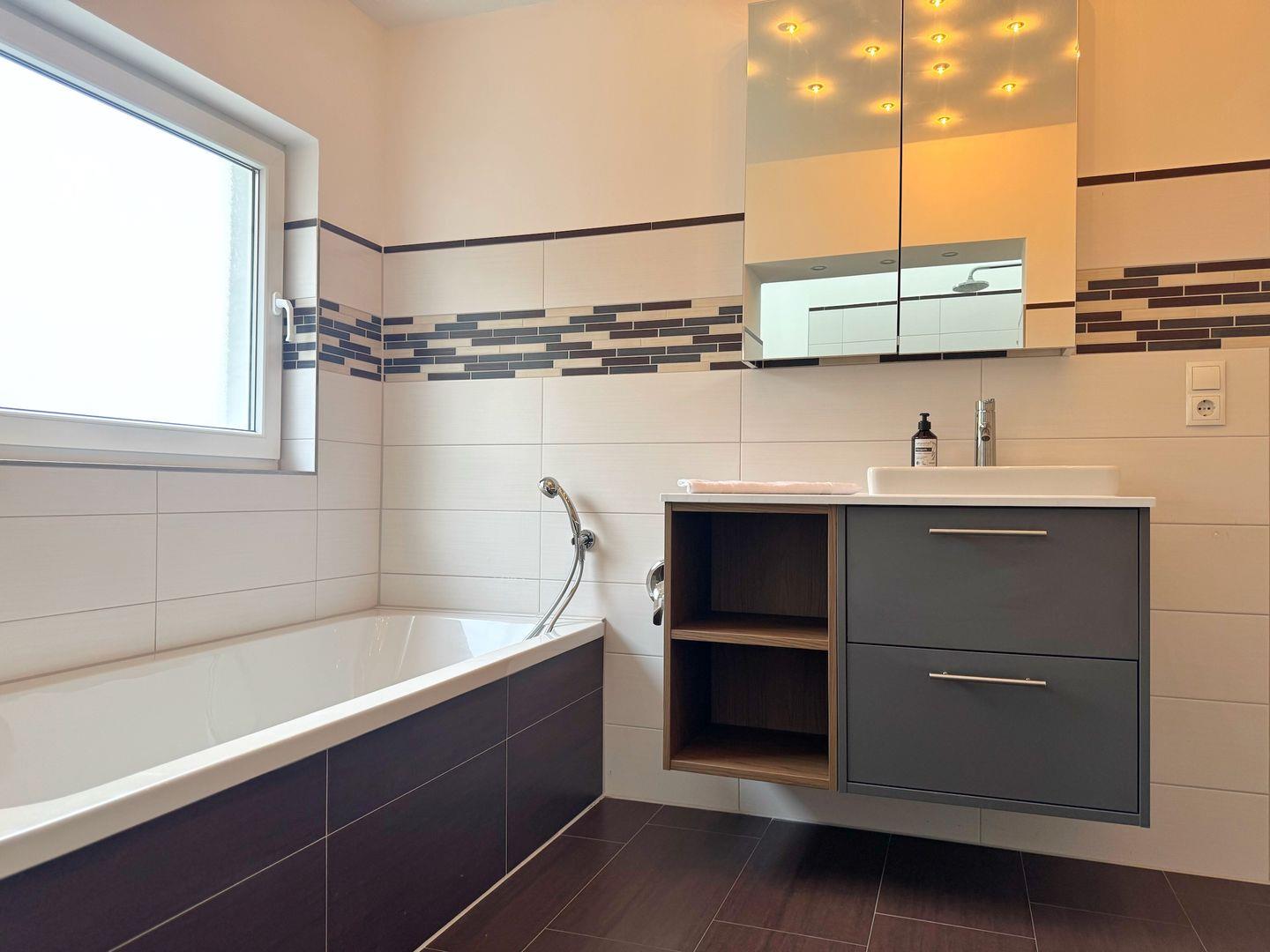Die Unterkunft erstreckt sich über 2 Etagen und überzeugt mit zwei einladenden Schlafzimmern, die eine entspannende Nachtruhe garantieren. Der hochwertige Laminatboden sorgt für eine angenehme Atmosphäre. Das moderne, helle Badezimmer ist mit einer bodengleichen Dusche und einer Badewanne ausgestattet.